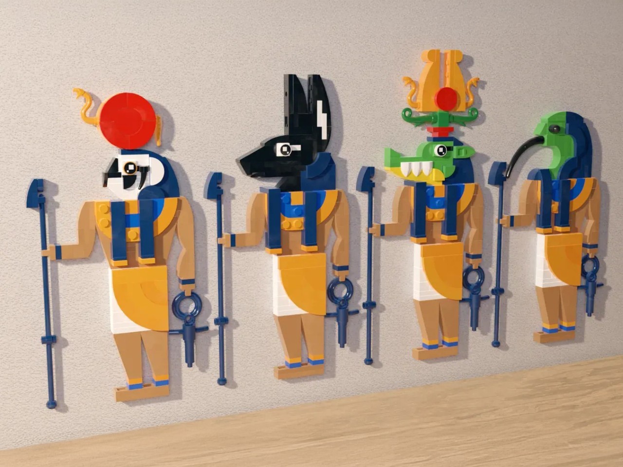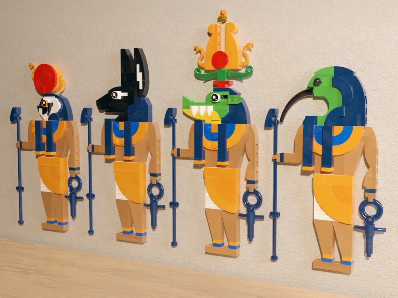 Egyptian mythology meets Danish plastic in what might be the most compelling LEGO Ideas submission I’ve encountered this year. A builder going by the handle ‘JanwillemLoonen’ has crafted a quartet of gods that would make any Egyptologist smile. Created in the signature relief-sculpture style often associated with Egyptian hieroglyphs, these LEGO ‘idols’ are equal parts cultural, quirky, and cool. The attention to iconographic detail here borders on obsessive, and I mean that as the highest compliment possible. While LEGO has dabbled in Egyptian themes before with the Adventurers Egypt subtheme (1998-2000) and Pharaoh’s Quest (2011), those sets focused on treasure hunting adventures rather than celebrating the mythology itself. This fan creation fills that gap with scholarly precision and genuine reverence for the source material.