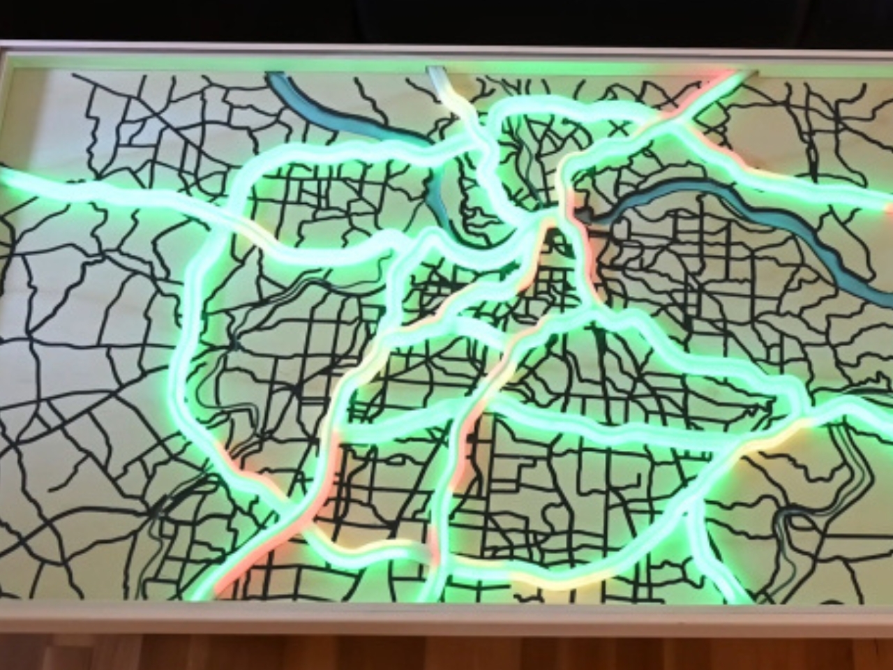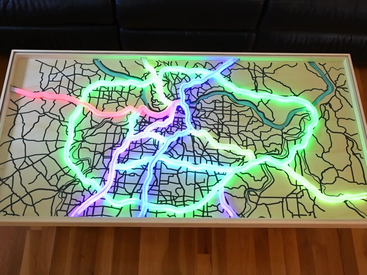 The table itself is fairly standard with mitered joints at the corners and coated in polyurethane. Bolt on a few legs, and you’ve got a coffee table. But the fun comes with the fancy design on top. A CNC-cut map of Cincinnati is laid out under a sheet of glass. Roads and rivers are painted for a nice touch. This DIY project doesn’t just have beautiful woodwork but also has a seamless integration of technology that transforms a simple piece of furniture into a functional traffic monitoring system. The Cincinnati map becomes a living, breathing display that shows real-time road conditions, making it both a conversation starter and a practical tool for daily life.