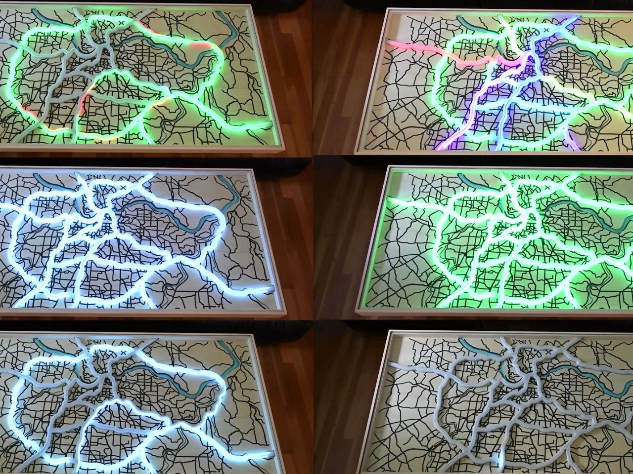 The real innovation lies beneath the surface. On top of the map resides an animated display of either road conditions or the other five pre-programmed animations. The animations include color-coded highways or the good ole’ gamer RGB. A Raspberry Pi powers the entire system, managing both the traffic data collection and the LED light show that brings the map to life. The LED system creates stunning visual effects that go beyond simple traffic updates. Users can switch between different display modes, including real-time traffic conditions with color-coded congestion levels, animated highway displays, customizable RGB lighting patterns, and five pre-programmed animation sequences.