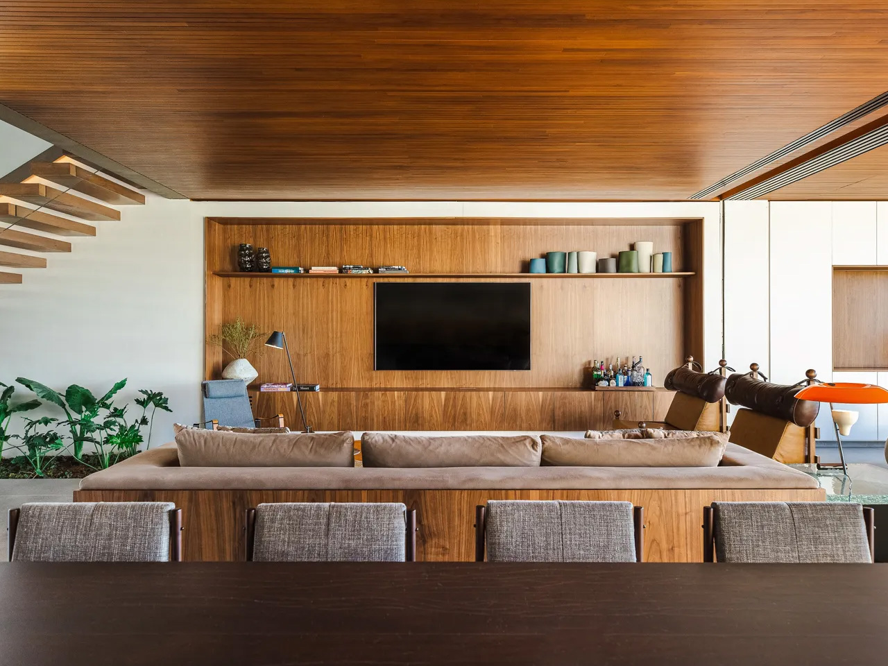 Located in São José do Rio Preto, near São Paulo, the JF Residence spans 600 square meters across two carefully planned floors. Designed by KG Studio, this rectangular composition showcases how contemporary architecture can seamlessly blend privacy with social connectivity. The design team, led by Felipe Kilaris Gallani and Victória Lacerda Chaves, brings extensive experience from prestigious firms like Triptyque Architecture, Isay Weinfeld, and Arthur Casas. Their collective expertise manifests in every detail of this impressive dwelling.