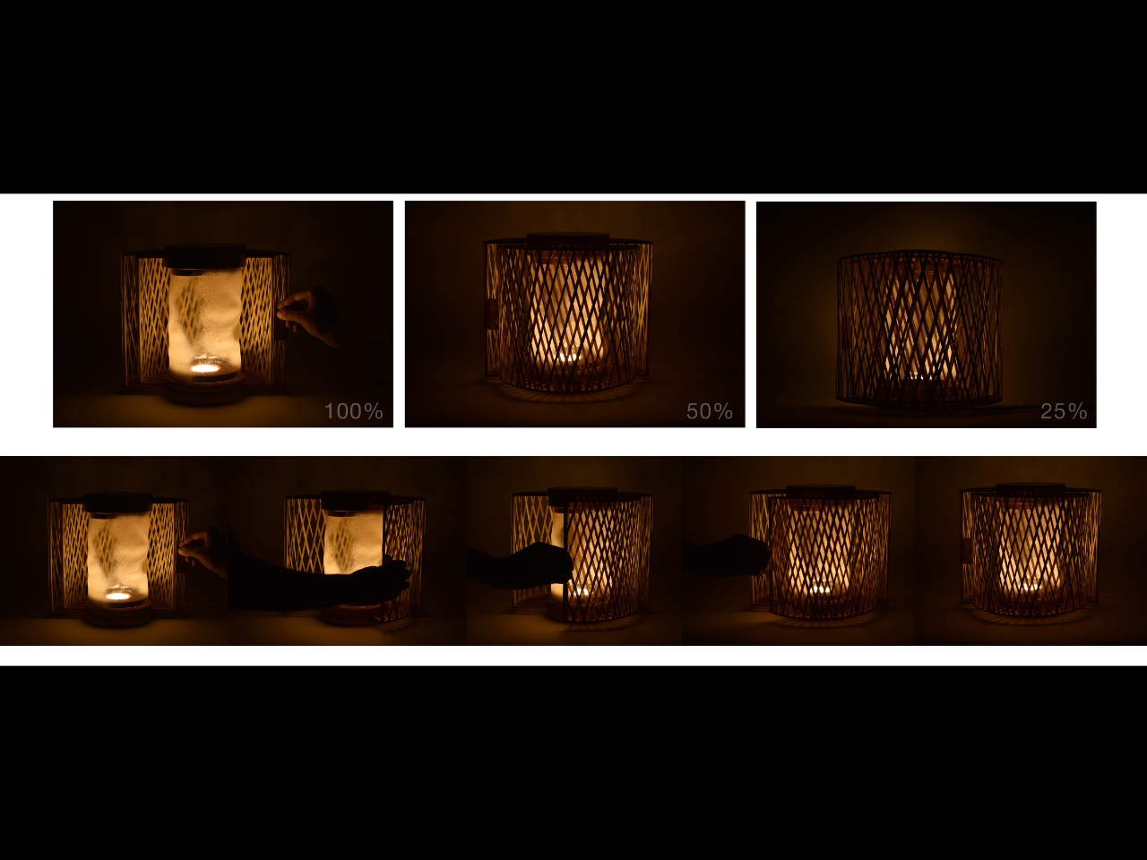 Another thing that sets TRIRIS apart from conventional table lamps is its innovative rotatable structure. The lamp pivots at both the top and bottom, allowing users to create an ever-changing choreography of light and shadow throughout their space. This interactive element transforms the simple act of adjusting lighting into a meditative experience, encouraging mindful engagement with one’s environment. The rotational functionality extends beyond mere aesthetics to offer practical lighting control. By overlapping the bamboo weaves through rotation, users can precisely adjust the light intensity to suit different moods and activities. Whether you need bright illumination for reading or a gentle glow for relaxation, it is able to adapt seamlessly to your needs.