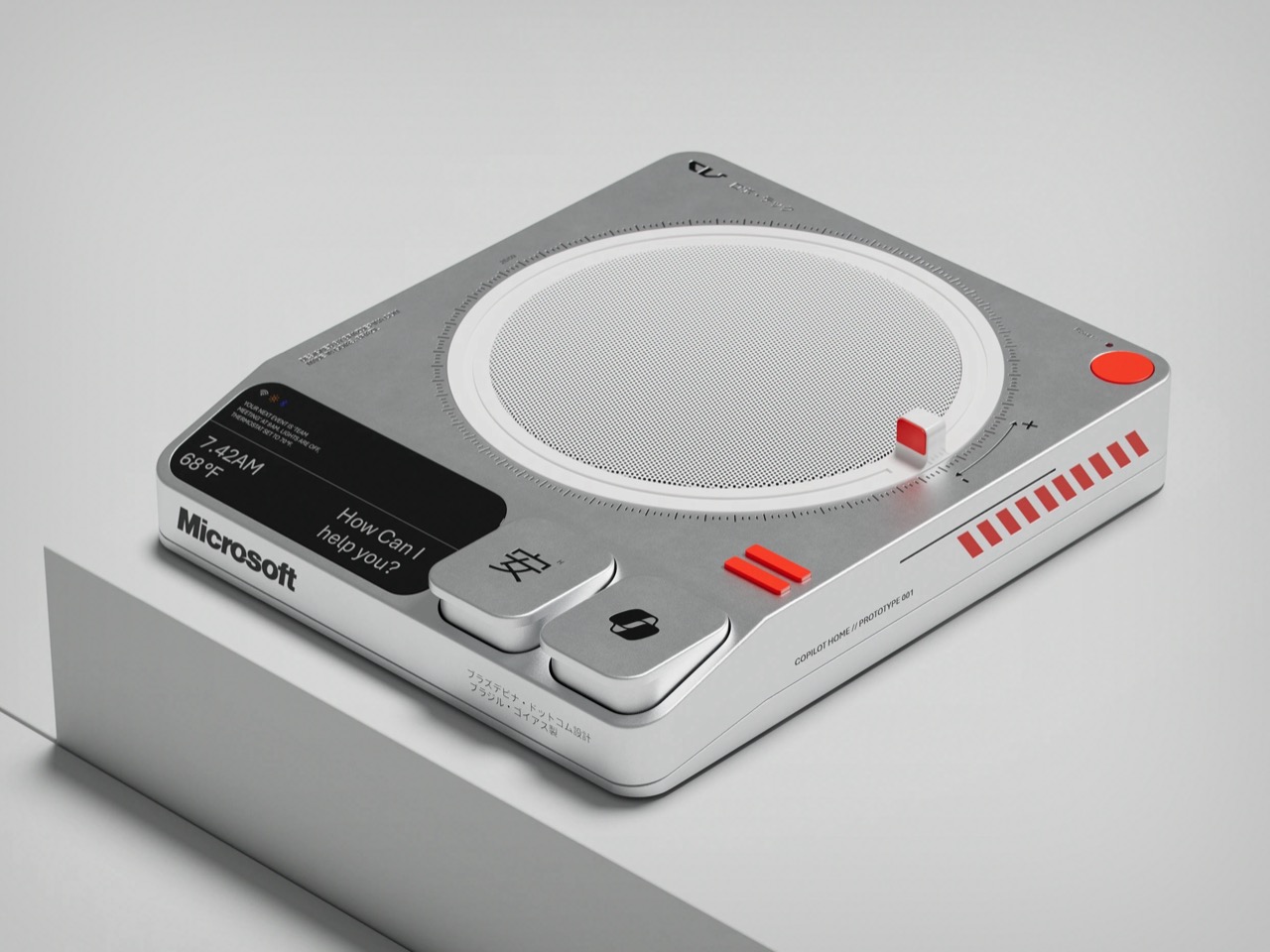 de Pina’s Copilot Home is his aspiration of what a ‘physical’ AI device could look like. It’s purely conceptual, he points out, even though he’s a principal designer at Microsoft. In a way, even though the device isn’t real, it’s come from a place that’s as legit as it can get – the mind of a Microsoft designer. The device takes cues from Cyberpunk, Japanese Anime, and a little Dieter Rams. It’s all-metal, featuring a very anodized-aluminum-a-la-Apple aesthetic, but has just enough visual drama to give it that punkish character that makes the device look futuristic and mildly otherworldly.