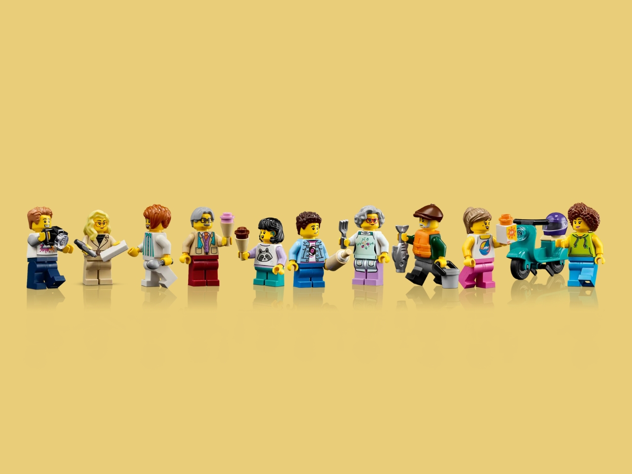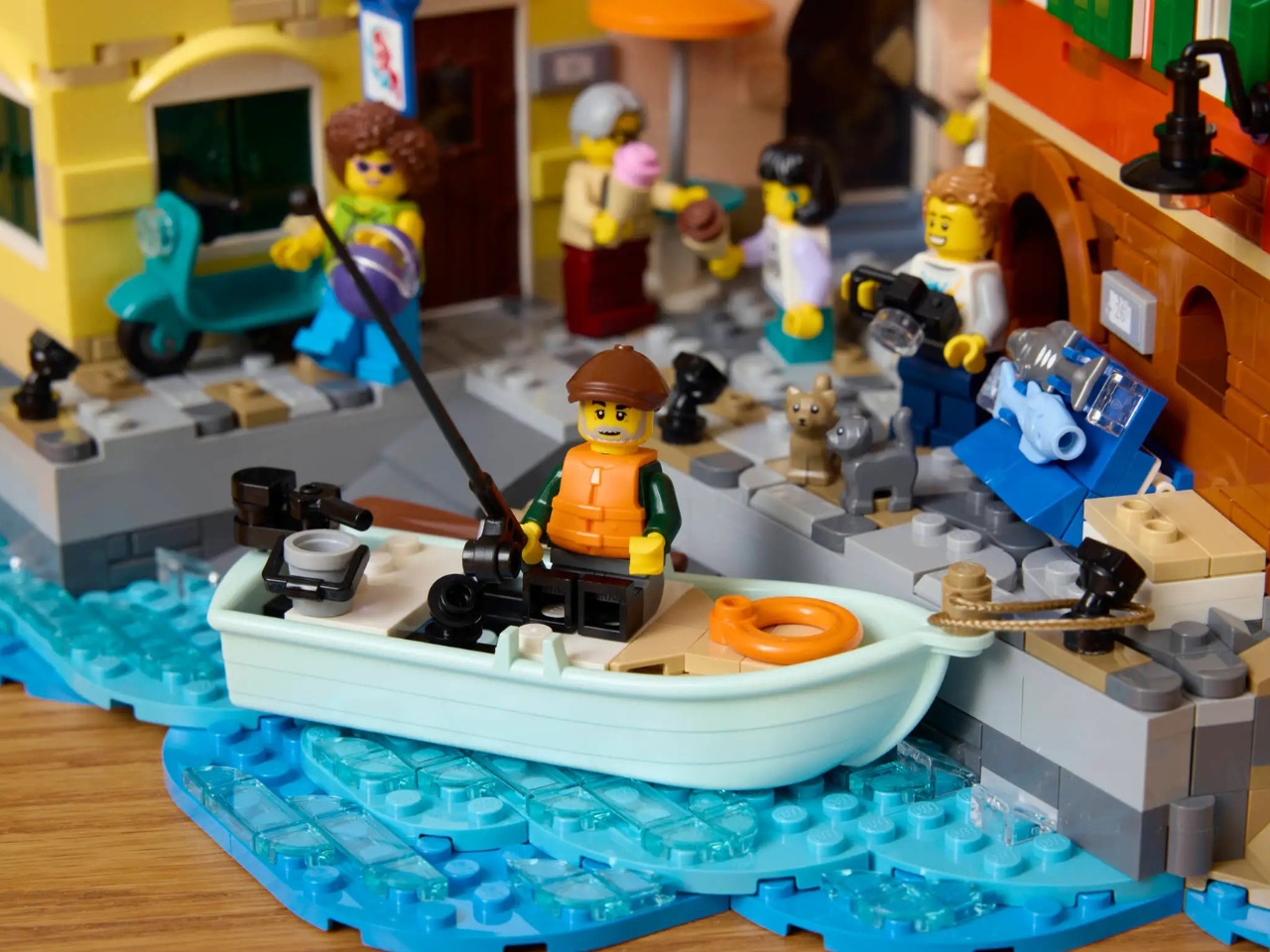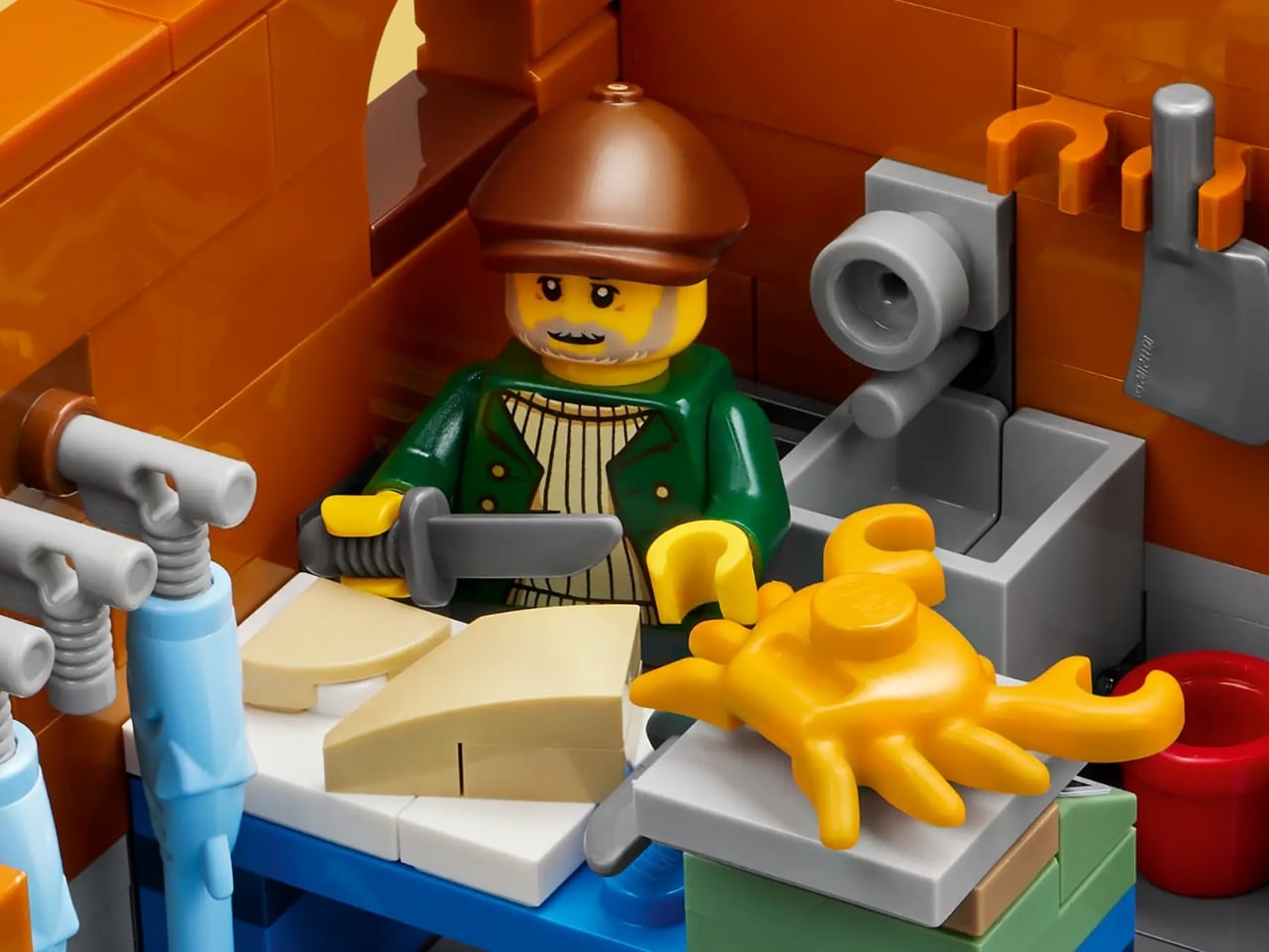 The set is able to capture all the charming details that have enchanted visitors over the years. You will basically put together a typical Ligurian fishing village, which includes a gelato shop, a dive shop, and a fish market. There are three colorful, angled buildings, and you can lift off the roofs and the upper stories so you can see the interiors, which are pretty detailed. Of course, a LEGO set would not be complete without minifigures. This one has 10, including a fish vendor, a gelato store owner, a pasta maker, and other colorful characters.