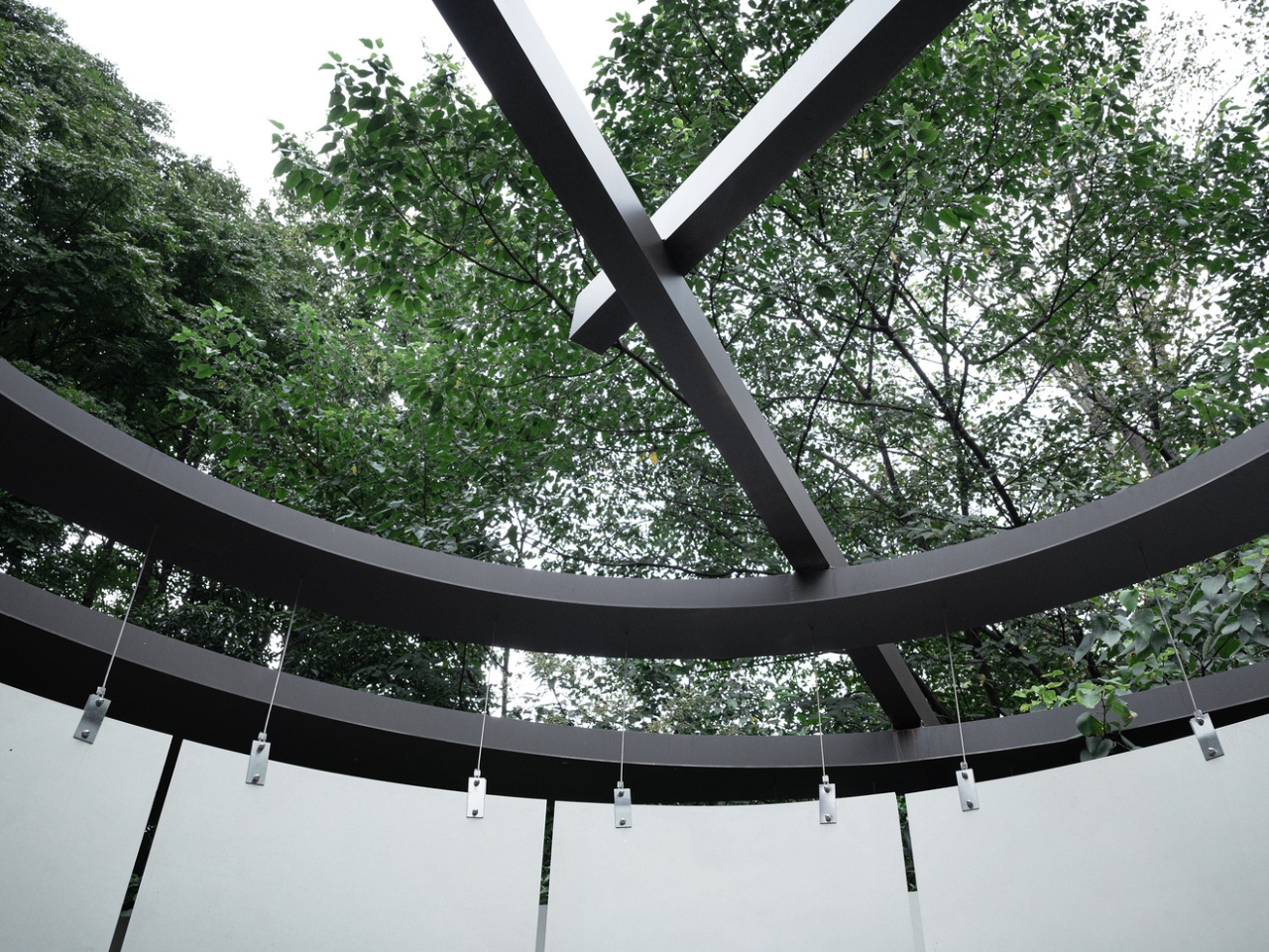 The Round Pavilion is both subtly hidden and wholly accessible. Atelier Guo’s vision was to harness the site’s gentle potential, extending the existing linear corridor and resolving its end with a gesture of convergence. The design borrows the corridor’s white wall as a language of scale and guidance, gently curving the path so that movement unfolds in a continuous gradient. The result is a blurring of direction and geometry, inviting visitors to discover the space intuitively rather than follow strict guidance.