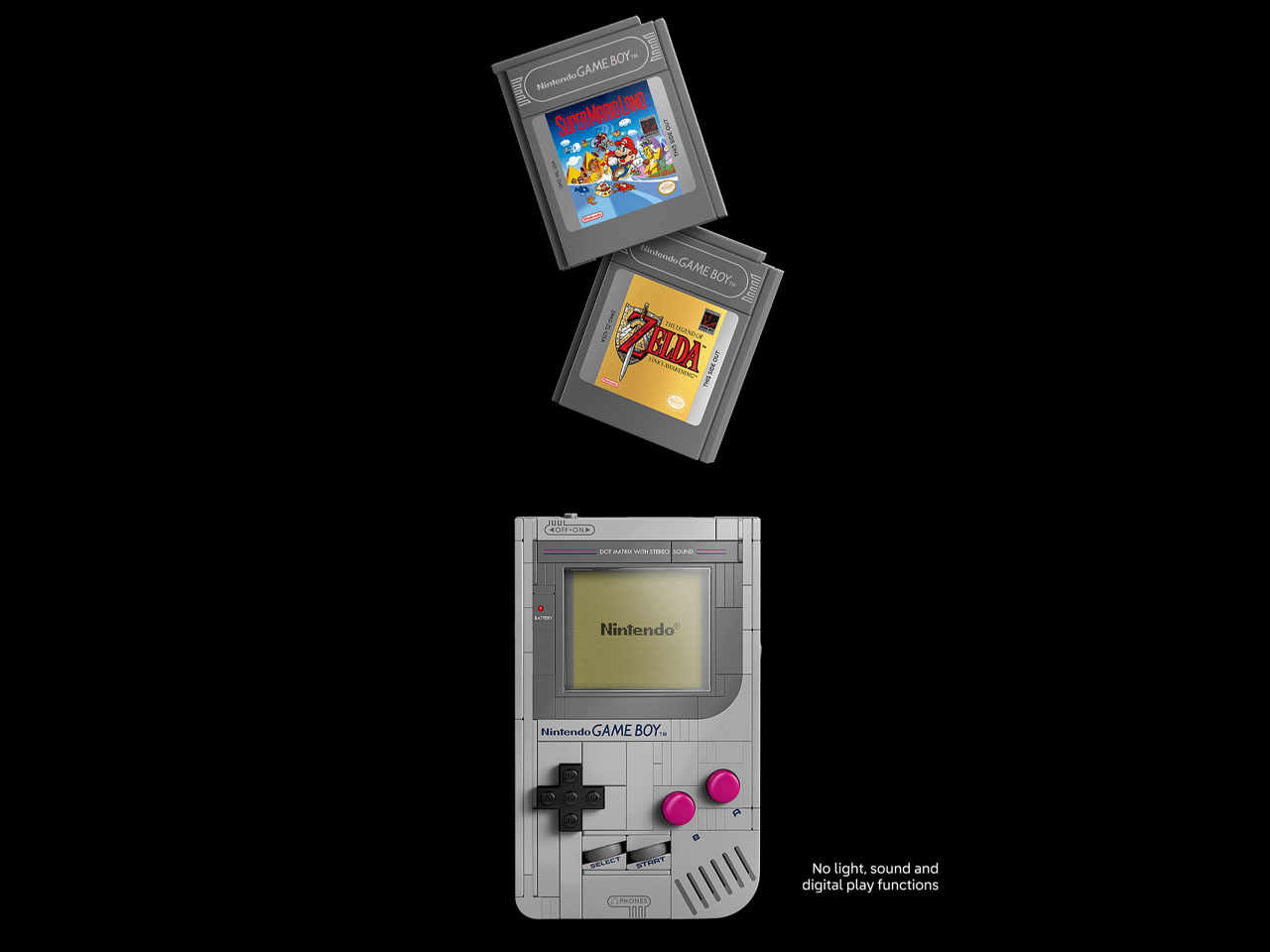 The only thing missing is the light and sound effect, or most importantly, the ability to play your favorite pixelated title on the LEGO-fied console. Since this GameBoy set is ideally meant to be displayed on your desk or living room shelf, it comes with a brick-built stand. The other included stand can be used to display the cartridges of the respective games.