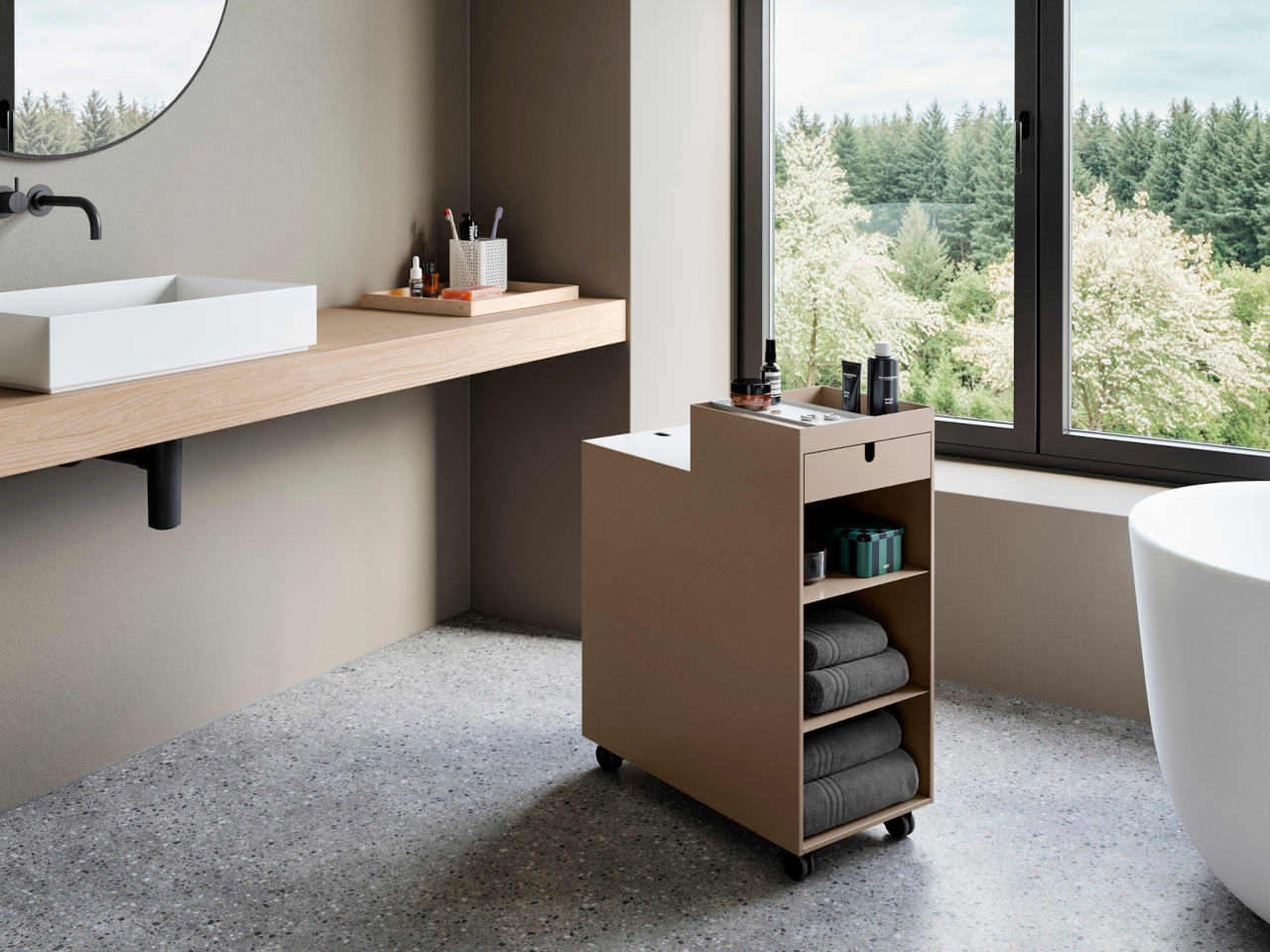 Mark Braun’s NEXT unit for Mueller addresses these space constraints with a straightforward metal design that refuses to pretend it’s anything other than what it actually is. This industrial-inspired piece combines storage and seating functions while rolling smoothly wherever you need it most, making it genuinely useful for dynamic living situations.