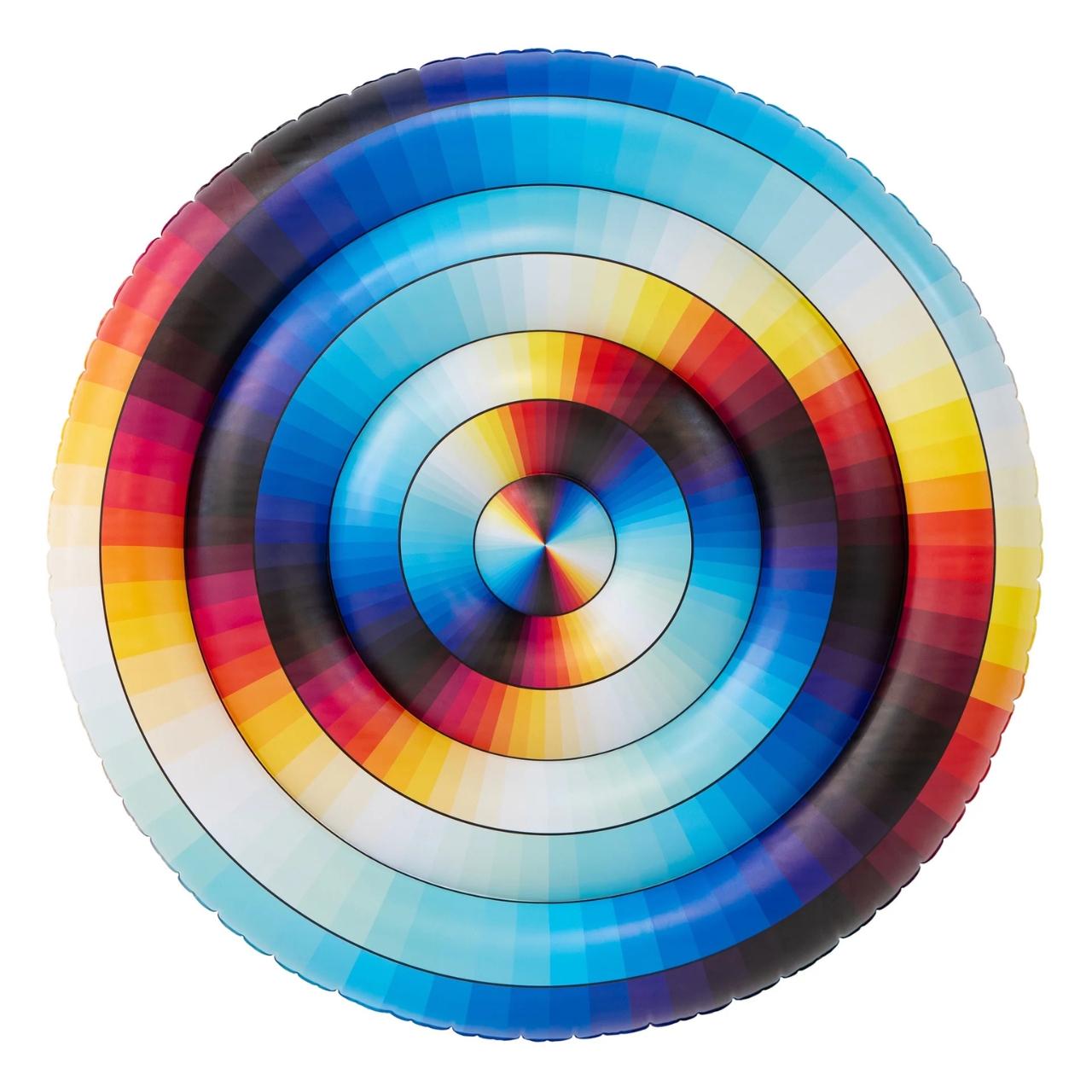 Designed in collaboration with Los Angeles-based art gallery BEYOND THE STREETS, this isn’t your typical pool float. The 5-foot diameter lounger features Pantone’s trademark concentric circles in vibrant blues, reds, yellows, and blacks, creating a mesmerizing color wheel effect that seems to pulse with energy. The design captures the artist’s fascination with the intersection of fine art and technological tools, delivering colorful precision that makes every pool session feel like an art installation.