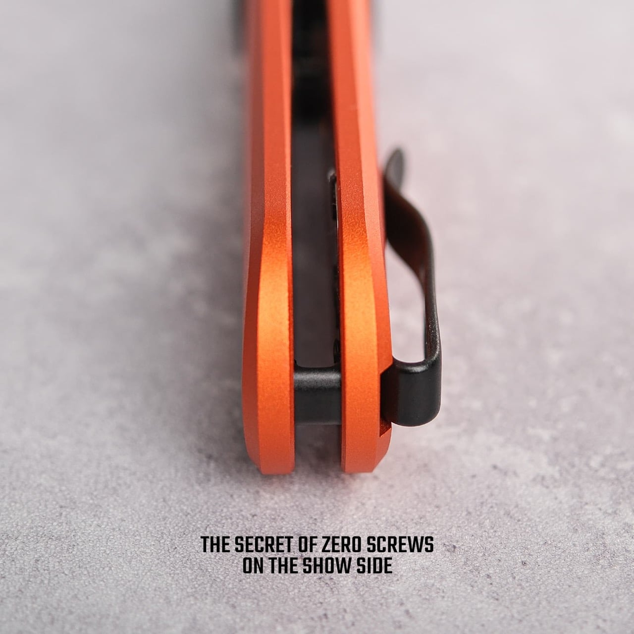 This particular variant from Vosteed sports a black stonewashed 14C28N blade encased in this bright orange anodized aluminum handle. Everything visible to the eye is made from metal (including the stainless steel pocket clip), giving the knife its premium appeal. However, that vibrant colorway (Orange is the new black, much?) gives the Corgi V the splash it truly needs, allowing its muted, minimal design to still capture the eyes without relying on flashy textures, grip inlays, or those horrible aggressive curves that tactical knives try to use to look ‘serious’.
