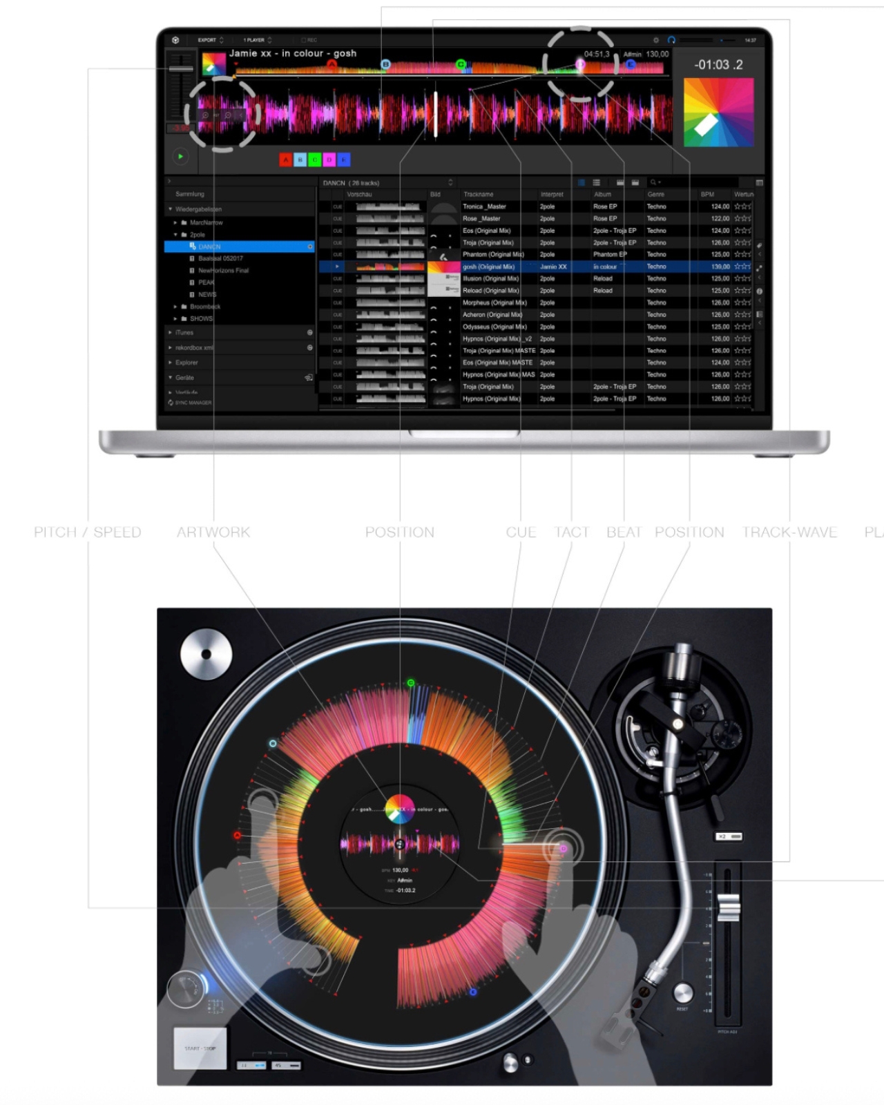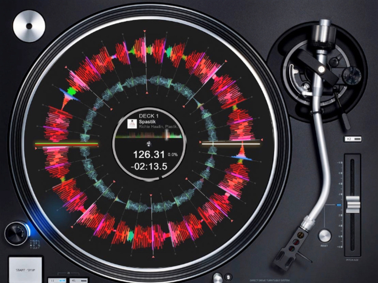 The IDVS+ is the world’s first Interactive Digital Vinyl System. Unlike a traditional turntable or controller, the IDVS+ is a high-tech vinyl record, designed to work with any DJ turntable you already own. Its 12-inch shape looks and feels like a classic record, but instead of grooves and a label, it features two ultra-thin, concentric touchscreens. These screens display waveforms, track information, album art, and other DJ tools, all while spinning on your turntable.