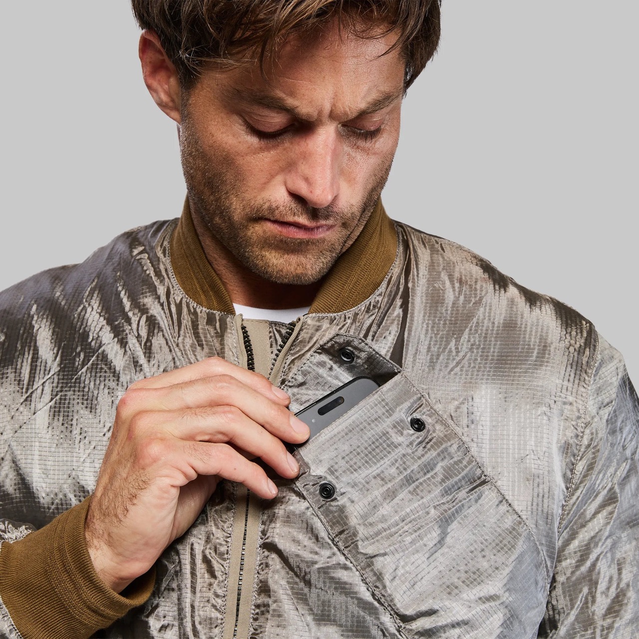 Of course, all this technical bravado would mean little if the jacket didn’t also deliver on aesthetics. Vollebak has modeled the Shielding Bomber after the iconic MA-1 flight jacket – the sort of gear worn by jet-age pilots when cockpits got tighter and the need for maneuverability became paramount. The result is outerwear that feels both futuristic and classic: cropped, unfussy, and practical, but with a quiet confidence that comes from knowing you’re wrapped in something extraordinary.