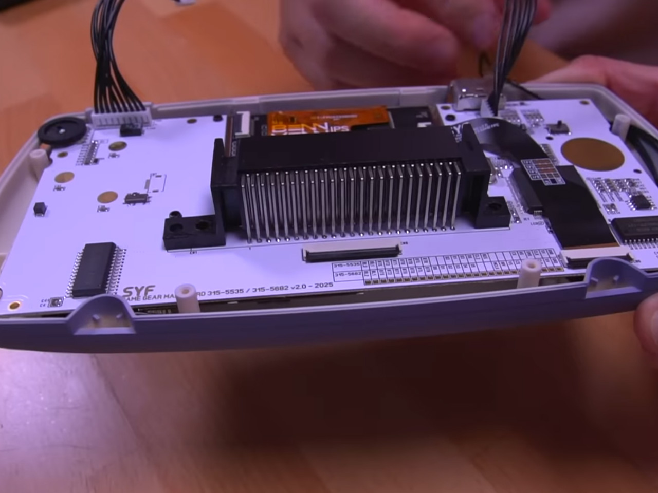 The SYF motherboard provided a power slot for USB-C charging. This allowed Tito to solve the problem of finding new AA batteries for the handheld in the middle of an immersive game. The custom board also ensures placement of dual aftermarket speakers for stereo sound, and the SYF GGFM, which features an authentic FM chip from Yamaha to enhance sound when playing compatible Master System games on the retrofitted Game Gear.