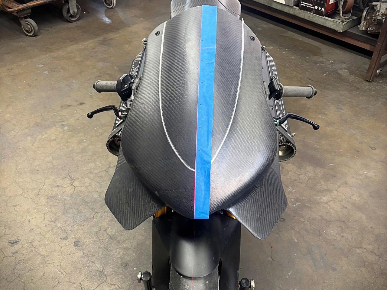 A large radiator sits prominently at the front, fed by custom ducting designed to channel air efficiently. Then there’s the transmission – a robust six-speed manual, likely adapted from a heavy-duty automotive unit, to cope with the immense torque. This is a far cry from your typical motorcycle gearbox. The rear suspension setup is equally unconventional. Hazan opted for a horizontally mounted shock absorber, a design often seen in high-performance cars, to manage the forces generated by the powerful engine and the bike’s unique weight.
