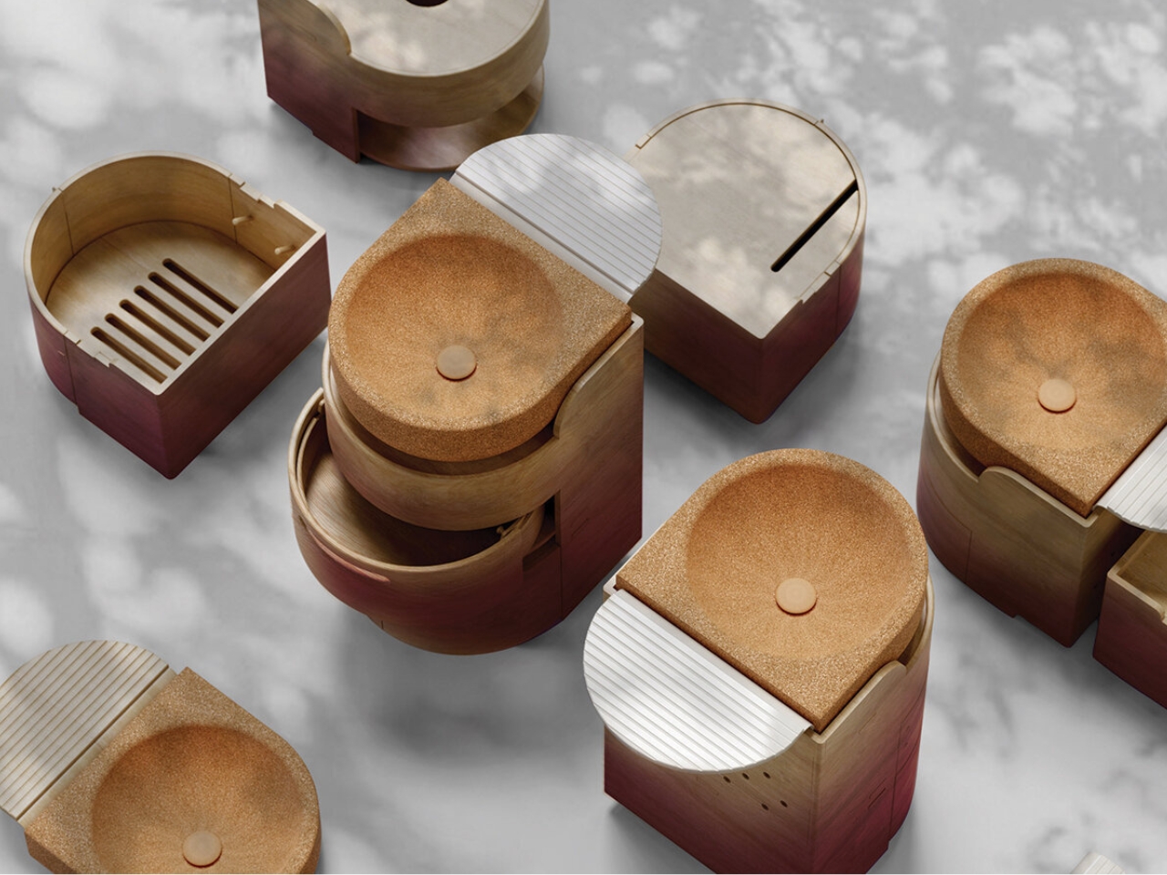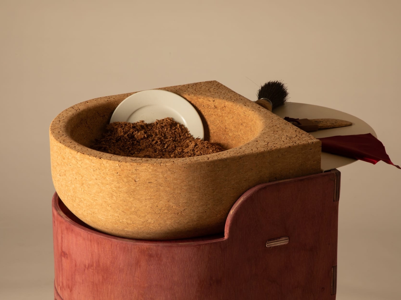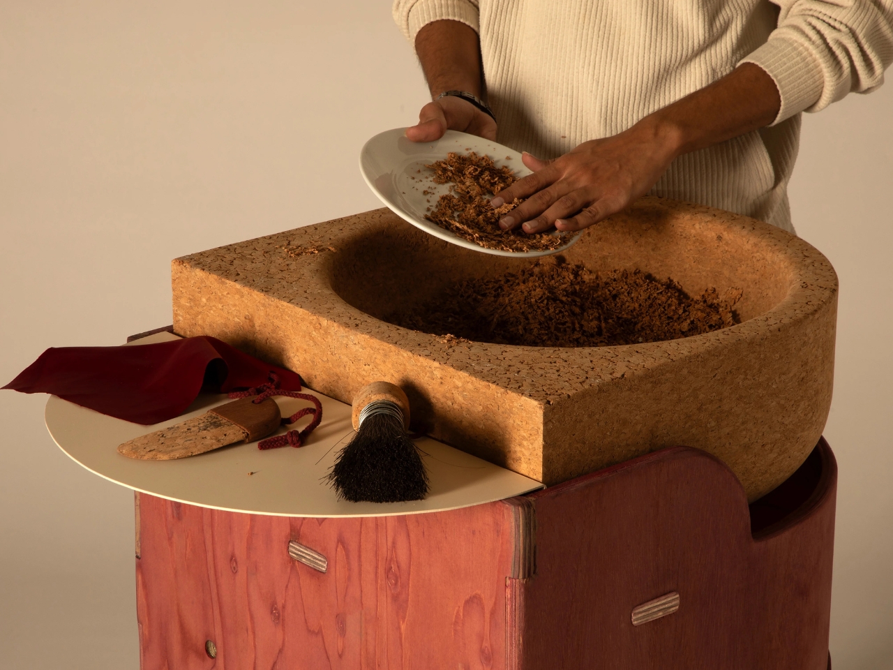 Pāvita is a reimagining of the humble act of dishwashing. It questions our reliance on water, synthetic cleaning agents, and plastic tools. Inspired by practices in water-scarce regions of India, especially Rajasthan, Pāvita draws on traditions that used natural, locally sourced materials for cleaning. At its core, it repurposes used wine corks and transforms them into a dry-cleaning medium. By replacing water with cork granules, Pāvita offers both an ecological intervention and a poetic gesture toward mindful domesticity.
