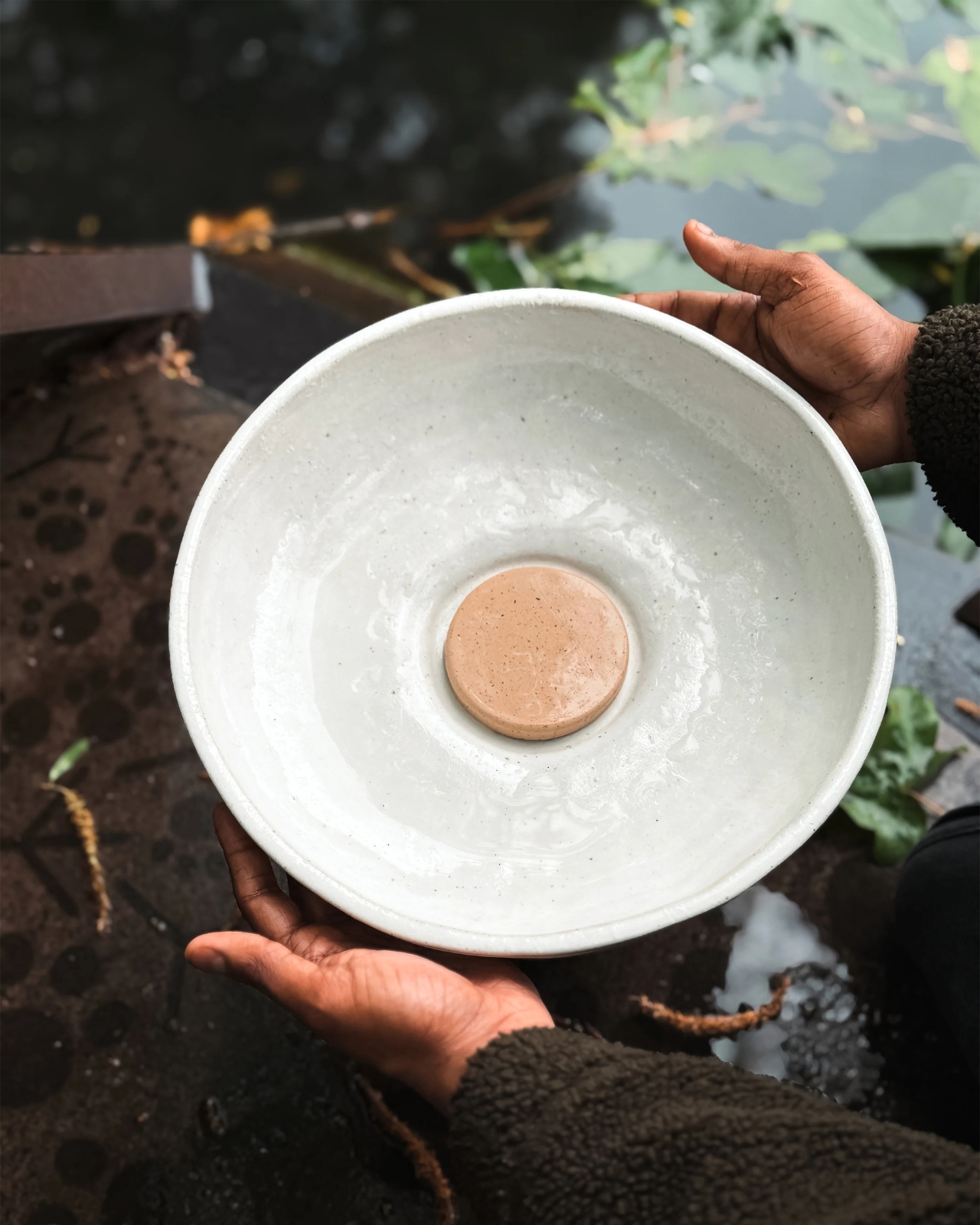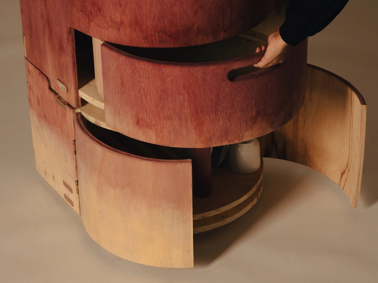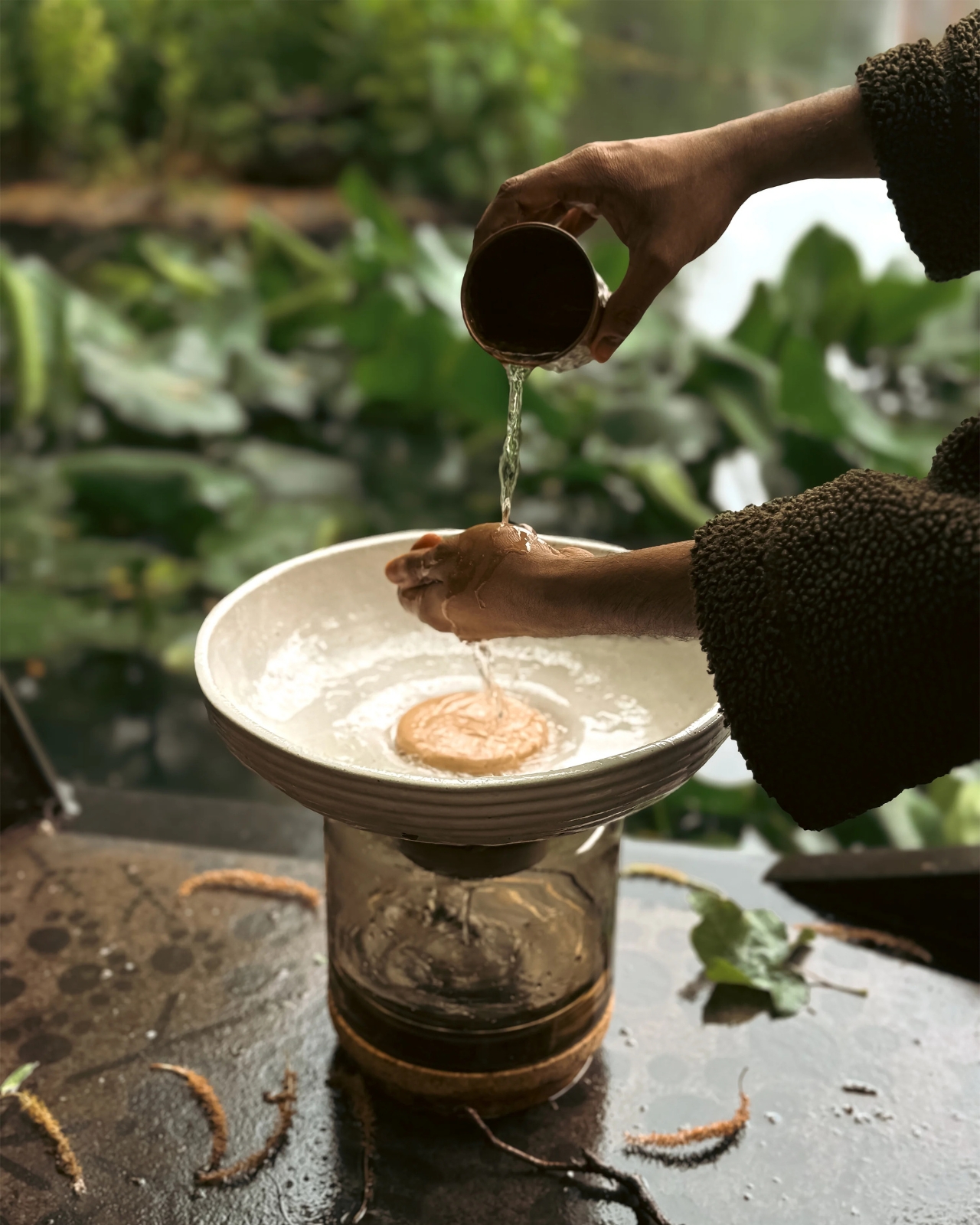 Kalasha is a greywater vessel and wash bowl inspired by ancestral Indian water vessels like the Lota and Chilamchi. Designed for modern kitchens, Kalasha features a terracotta and charcoal filter, allowing users to reclaim and reuse water for non-potable tasks. This vessel ritualises everyday actions, encouraging measured use, ecological care, and quiet frugality. Kalasha not only makes our water consumption visible but also enables a second use of this precious resource, reminding us that water is the substance of life and death.