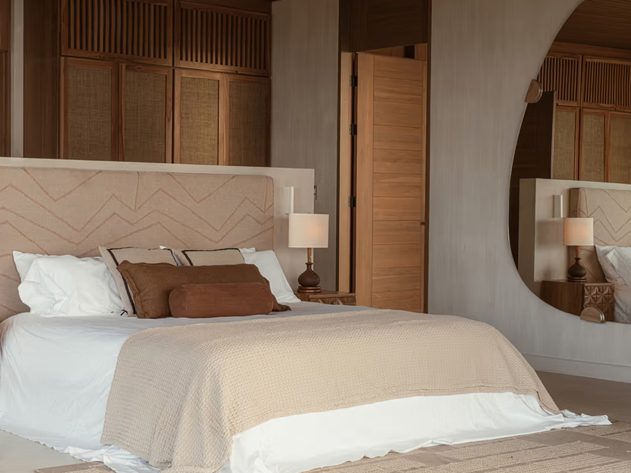 Locally sourced teak and natural stone create this soft, earthy palette that mirrors the volcanic soil and weathered coastline. The bespoke furniture pieces feel like natural extensions of the architecture rather than afterthoughts. Everything ages gracefully in this humid environment, developing a patina that deepens the connection between building and landscape. The craftsmanship celebrates regional traditions while serving contemporary living needs.
