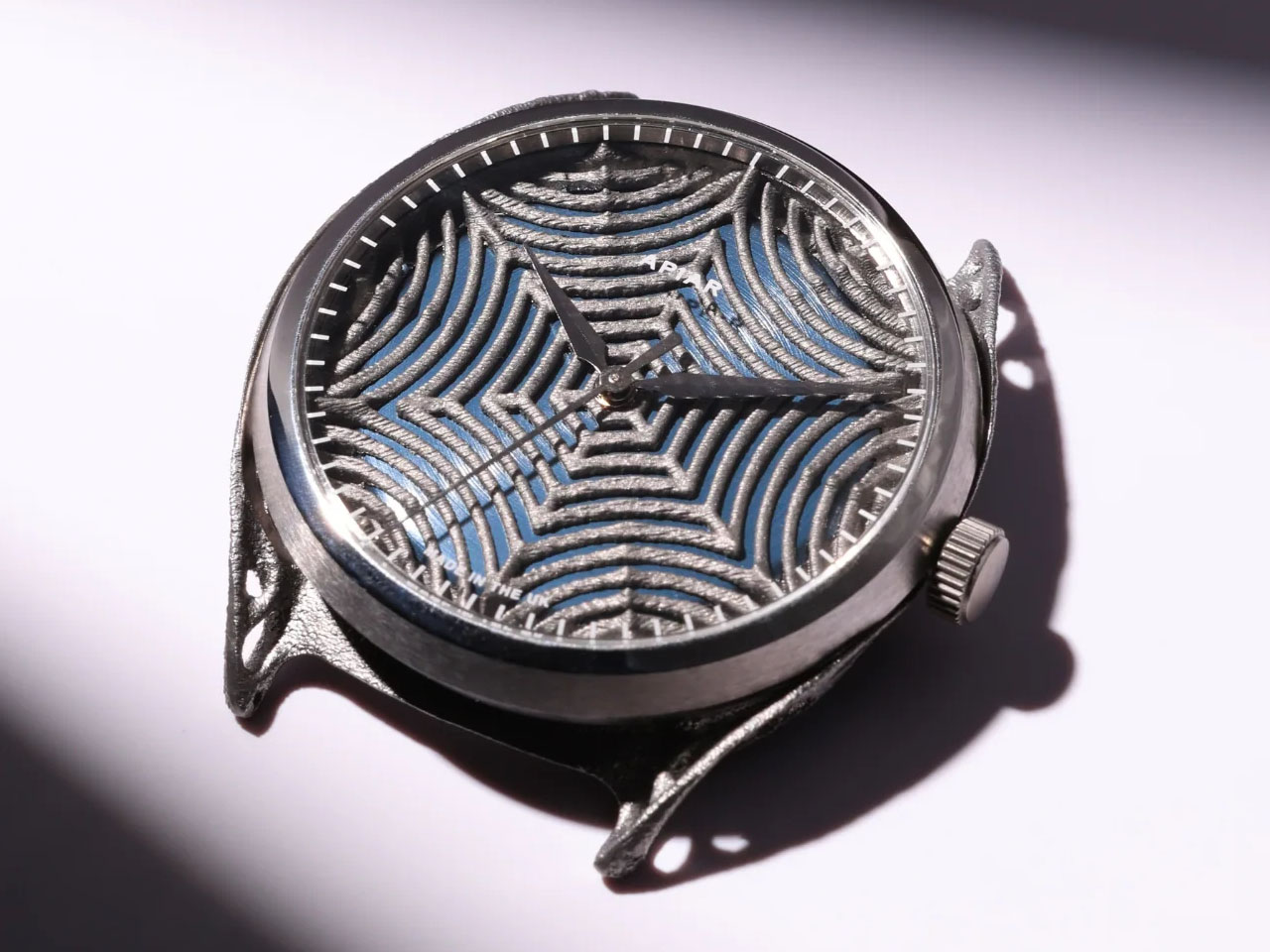 Apiar Gen1.0 is therefore a stunning example of what’s possible with 3D printing, since the watches are made in a process where metal objects are formed by adding materials, rather than carving, cutting, and stripping them away. The use of additive watch manufacturing technique provides these 3D printed watches textured, web-like dial, which wouldn’t be possible otherwise with traditional manufacturing.