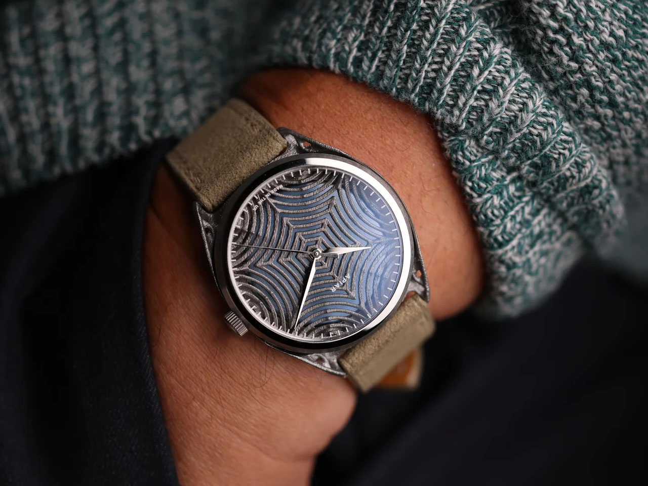 Of course, the simple watch, with nickel-coated hour and minute hands, looks distinct because of the two different color skeletonized dials, which are textured in a web-like interface and form an integral part of the round case. But it’s also the watch’s bezel that stands out for a different reason. Perhaps it’s the only part on the watch case, which is CNC machined and not made through additive manufacturing. The distinctive Apiar Gen1.0 features a 39mm case, designed to fit comfortably on nearly all wrist sizes. It is powered by an automatic La Joux-Perret movement, offering a 68-hour power reserve. With most components made in the UK and final assembly also taking place there, the Gen1.0 is priced at £2,250.