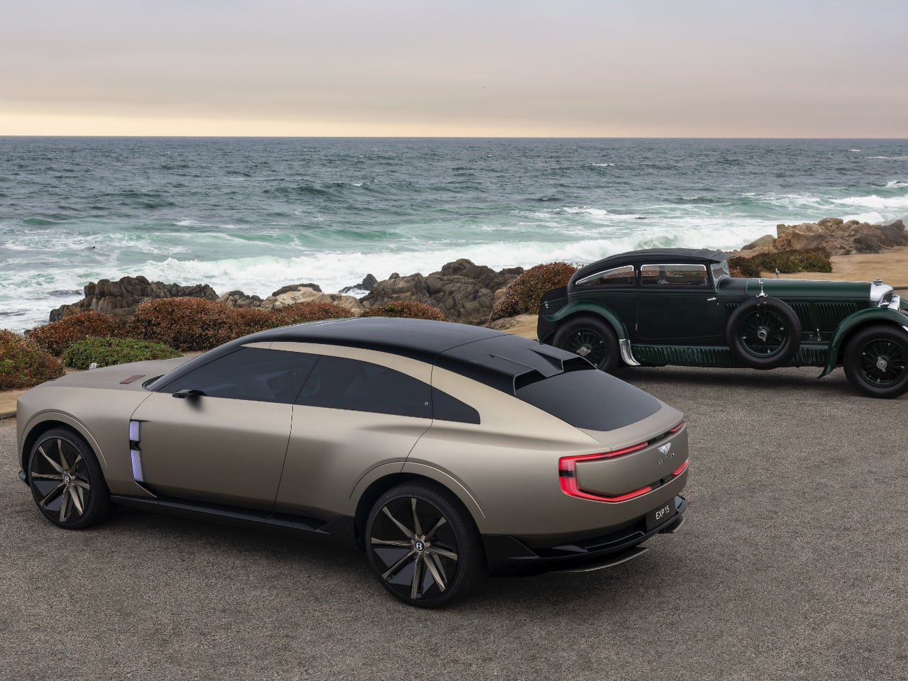 Bentley’s EXP 15 concept made its public debut at Pebble Beach as the brand’s first concept car to attend Monterey Car Week since the EXP 100 GT celebrated their centenary in 2019. This three-door, three-seat design pays direct homage to the iconic 1930 Speed Six Gurney Nutting ‘Blue Train’ Sportsman coupé, but with a distinctly modern interpretation.