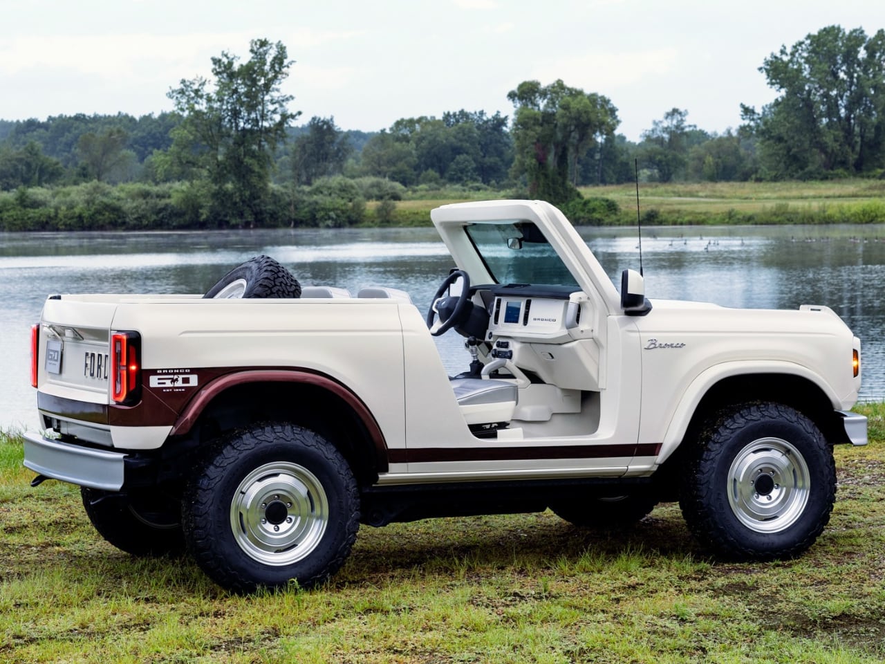 Bronco design chief Robert Gelardi called it “like a birthday present to Bronco” for the nameplate’s 60th anniversary. The concept was inspired by a Wimbledon White 1966 Bronco Roadster owned by an enthusiast who actually worked with Ford on developing the 2021 Bronco. That kind of authentic connection shows in every detail.