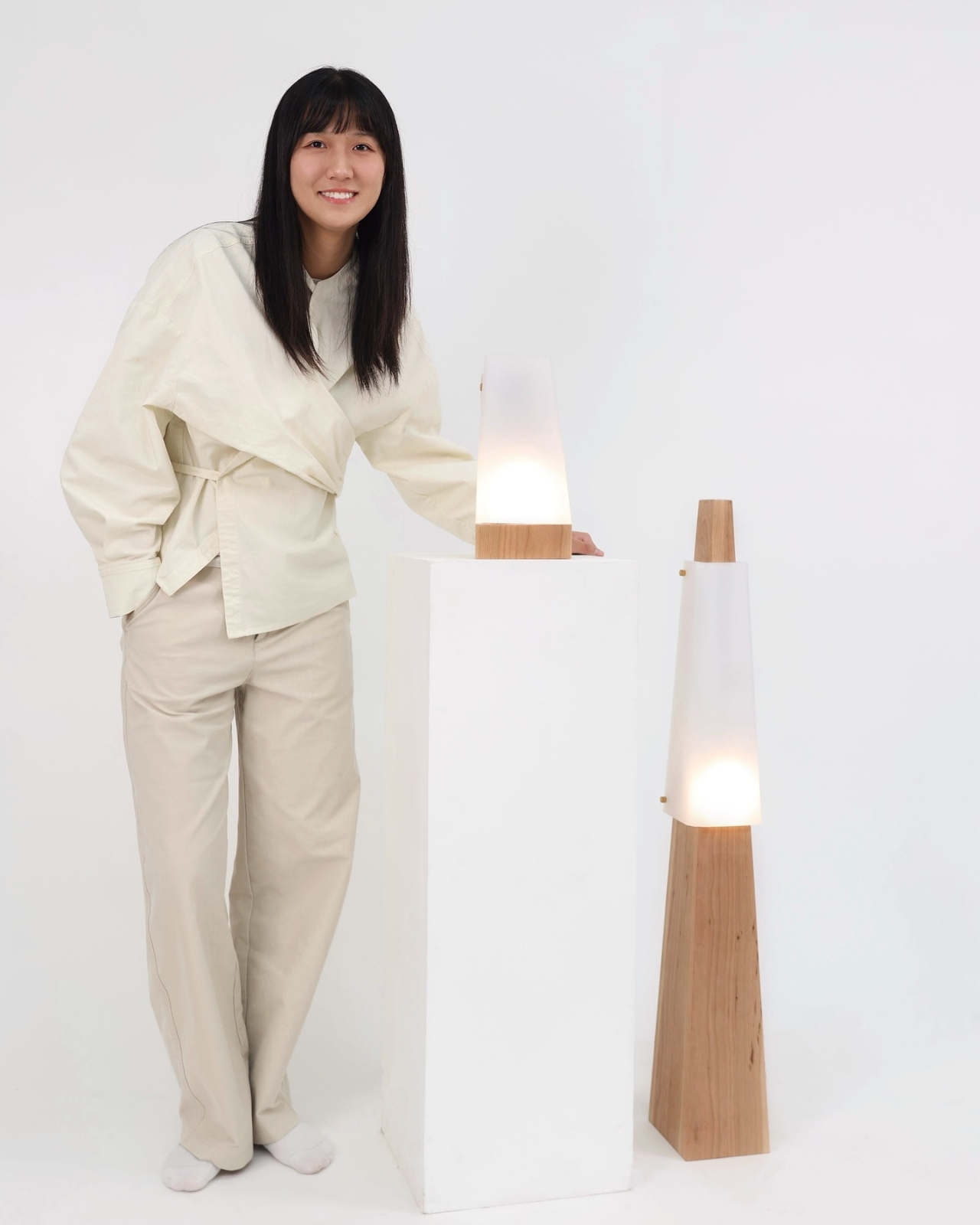 Fiona’s design stands out for its focus on presence and reflection. The collection’s minimalist wooden bases and softly diffused lamp shades provide warmth and a tactile quality that invites touch. The physical form is simple and unpretentious, allowing the experience of the light itself to take center stage. The digital components are seamlessly integrated, making technology feel like a natural part of the object rather than an intrusion.