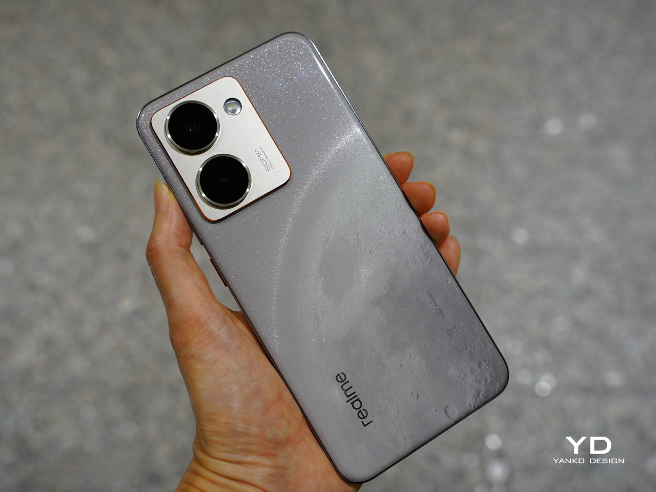 Realme uses a starlight ink process for this model. The back panel includes tiny reflective particles that shimmer as you move the phone under light. The effect is subtle and adds an extra layer of visual depth, which is not common for devices in this price range. It is enough to draw your attention without being flashy or distracting.