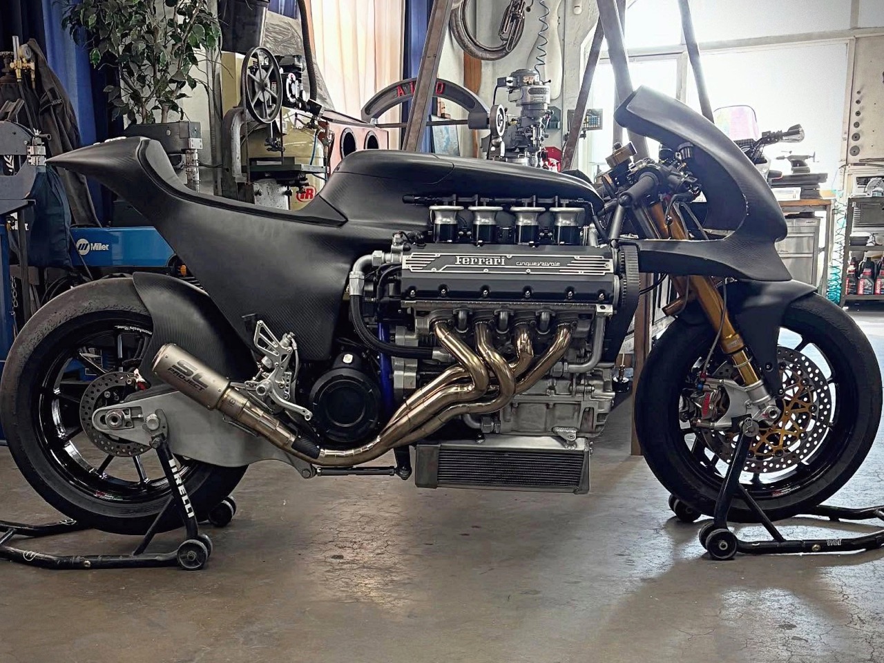 Max Hazan’s HF355 is bonkers in the best possible way. He took a 3.5-liter Ferrari F355 V8 engine that originally made 400 horsepower and built an entire motorcycle around it. The flat-plane crank V8 weighs more than many complete motorcycles, creating engineering challenges that would make most builders run away screaming. Hazan embraced the madness and made it work somehow.