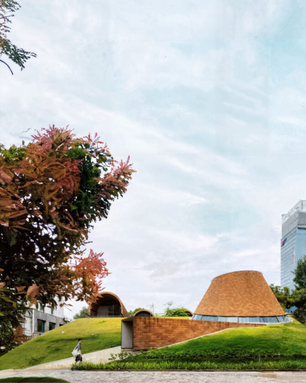 Beyond their functional benefits, the shelters also serve as sculptural elements within the landscape. Their elegant arches create dynamic views from every angle, changing appearance throughout the day as sunlight and shadows interact with their curves. The result is a visually engaging environment that continually rewards visitors with new perspectives. The Slope Garden itself is more than just a backdrop for the shelters. Its terraced layout offers a series of interconnected outdoor rooms, each with its own character and microclimate. Plants are carefully selected to thrive in the local climate, providing year-round interest and supporting local biodiversity. Pathways weave through the terraces, encouraging exploration and discovery.