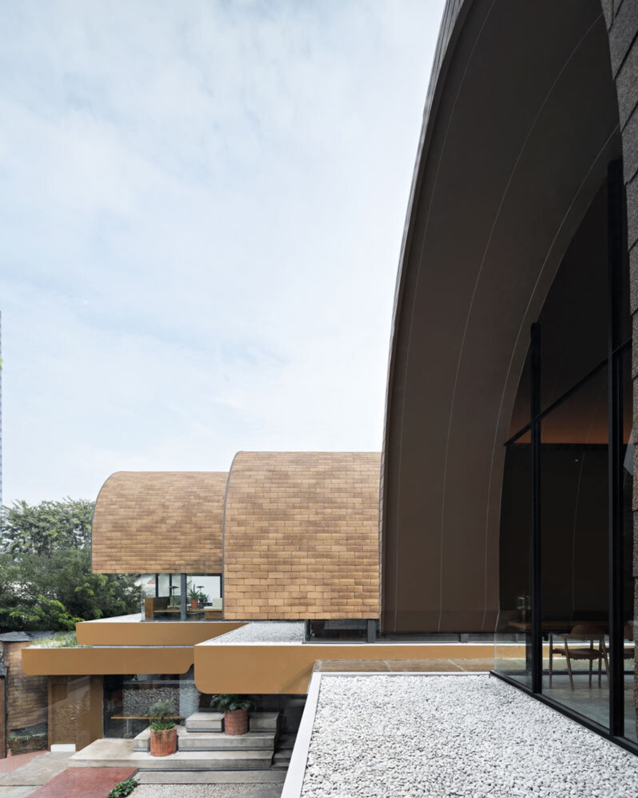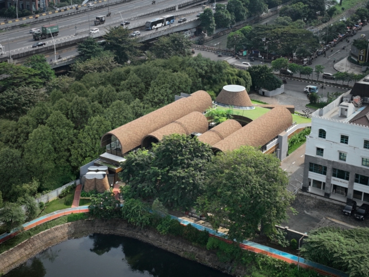 In North Jakarta, a striking architectural project is capturing attention for its seamless blend of design and nature. The “Shelters on Slope Garden” by RAD+ar (Research Artistic Design + architecture) introduces four gracefully arched structures nestled within a layered, sloping garden. This project stands out not just for its aesthetic appeal but for its thoughtful response to the urban environment and the needs of the local community.