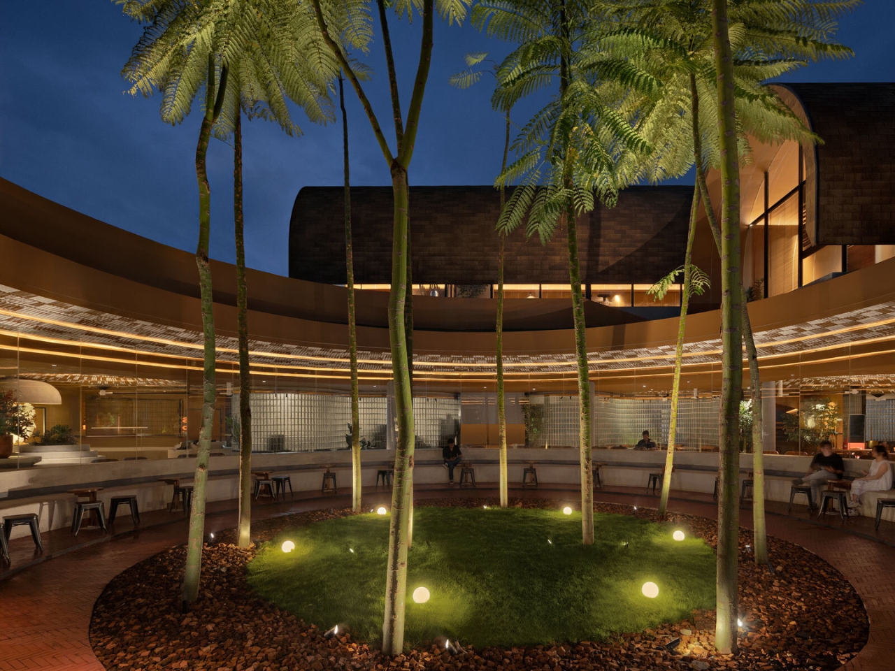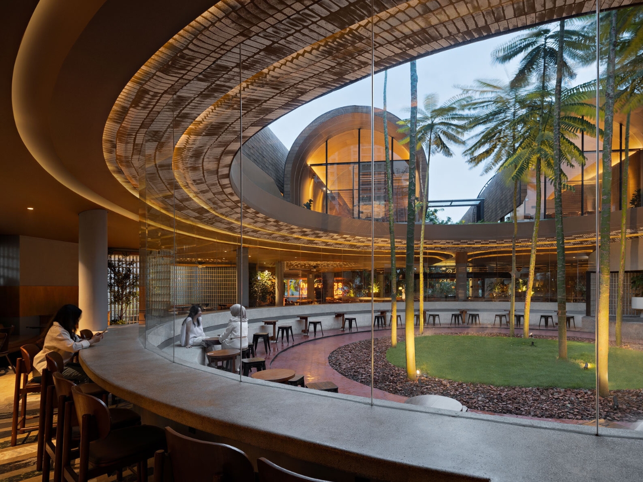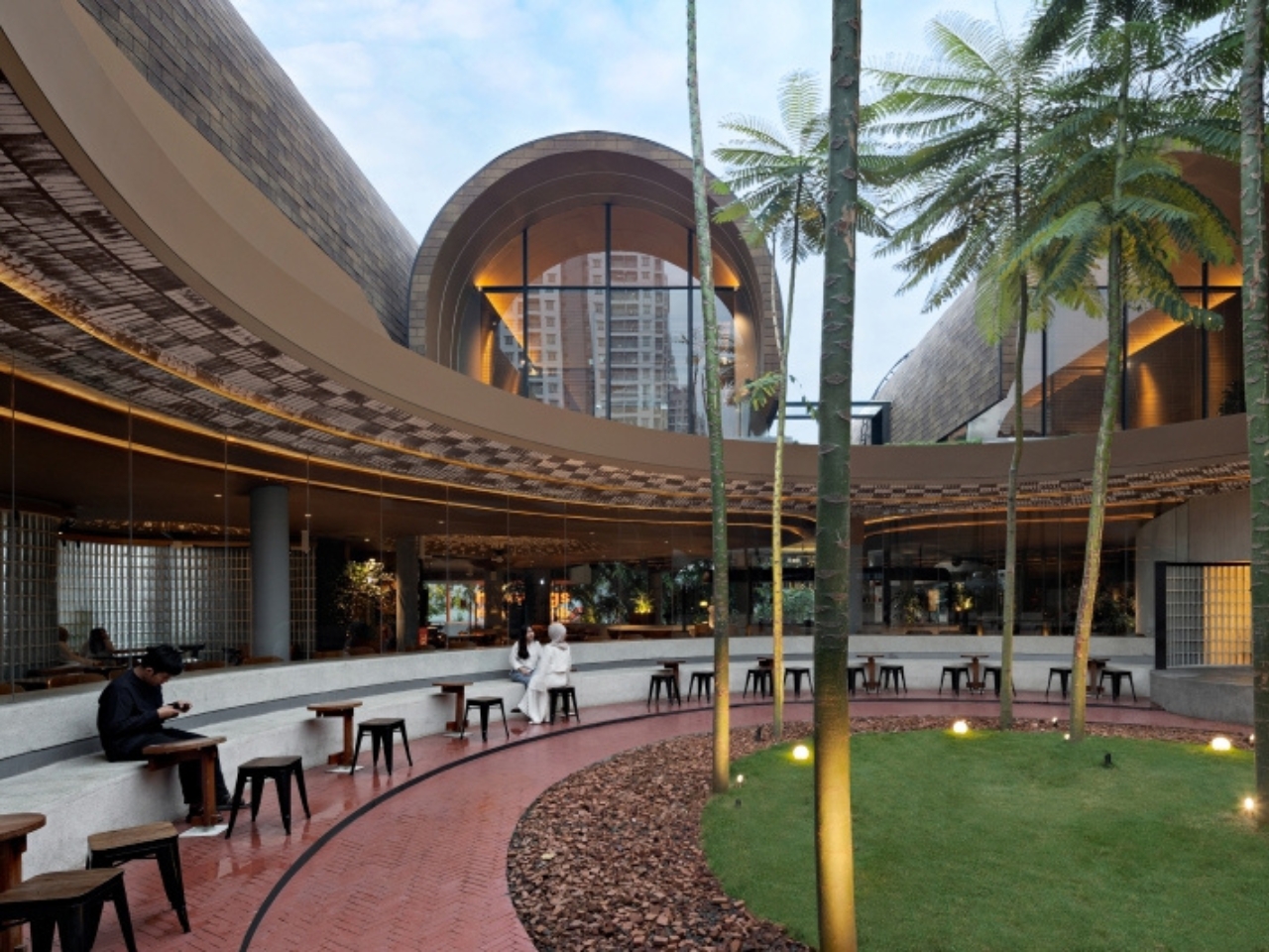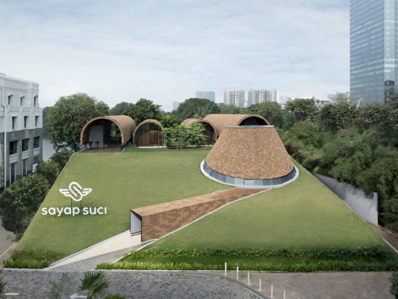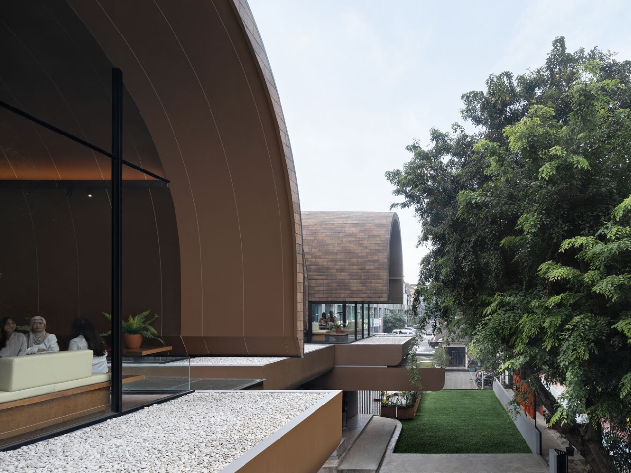 RAD+ar, a forward-thinking Indonesian design studio, envisioned the shelters as multifunctional spaces that serve both practical and social purposes. Each shelter is shaped with gentle arches, creating a welcoming silhouette that harmonizes with the natural contours of the garden. The layered landscaping follows the natural slope of the site, allowing the structures to appear as though they are growing organically from the ground. This approach minimizes disruption to the existing landscape while maximizing green space—a rare commodity in densely developed areas.