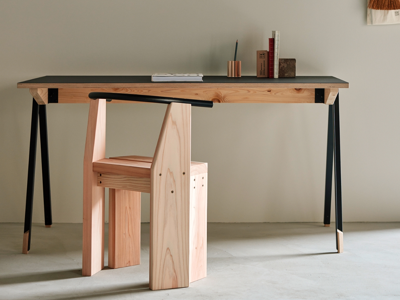 There’s a deeper story behind the Hiroi’s straightforward look. Ishinomaki Laboratory was founded after the 2011 earthquake to teach communities to build furniture using basic tools and off-the-shelf materials. The Hiroi embodies that spirit. You can buy it finished, which helps fund more workshops, or learn to make one yourself. The exposed screws and brackets aren’t just aesthetic. They make repairs easy and reveal how the chair comes together. Compact enough to tuck under counters, the Hiroi is ideal for small spaces, and the steel back doubles as a handle when you need to pull it out for unexpected guests.