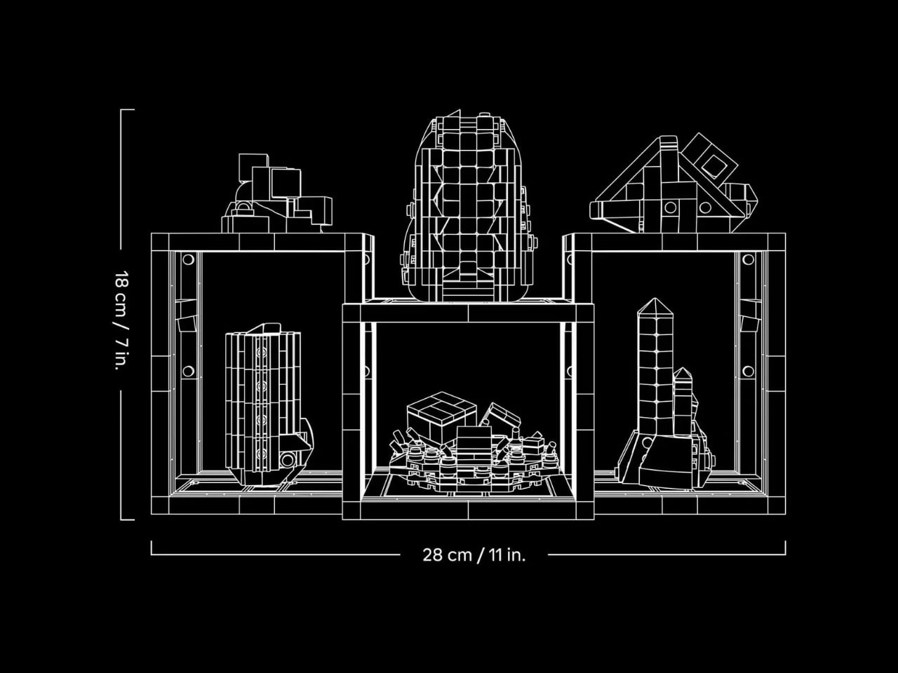 Three modular shelf units included with the set offer versatile display options. Measuring approximately 7 inches tall, 11 inches wide, and 3 inches deep, these can be connected for a unified presentation or separated to create multiple display points throughout your space. They work equally well as desk accents, bookshelf decorations, or standalone display pieces.