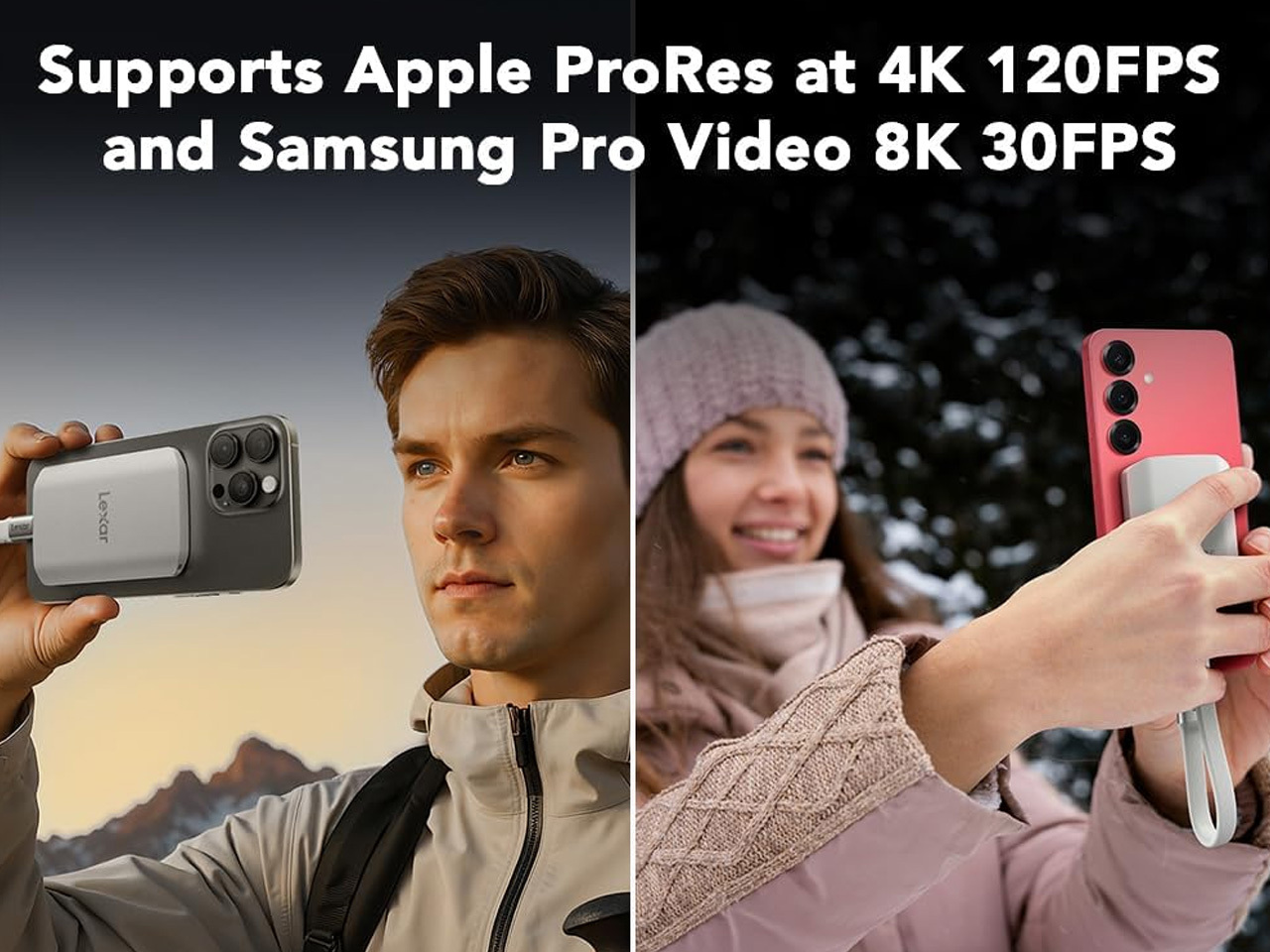 Stuck to the back of an iPhone, the drive can handle tasks like recording 4K ProRes videos and storing high-quality images. According to the information available, the Lexar magnetic SSD clipped to the iPhone 150 Pro and 15 Pro Max models can unlock 4K recording at 60fps, and with the iPhone 16 and the new 17 models, it can handle up to 120fps.