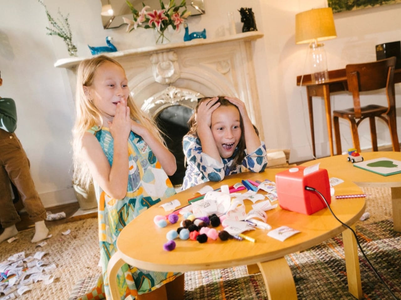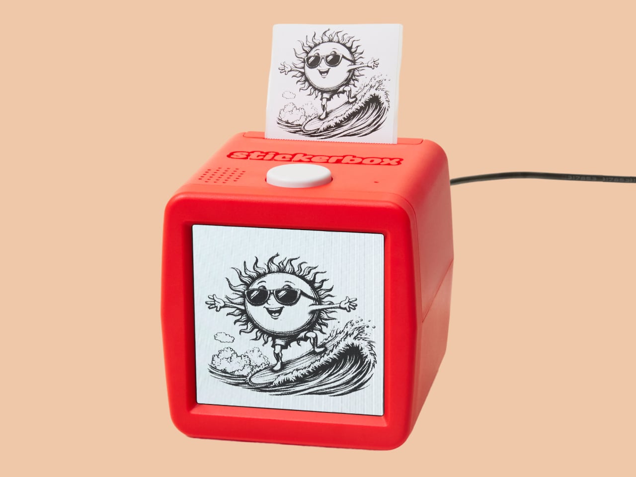 Stickerbox by Hapiko offers a quieter trade. It looks like a bright red cube, measures 3.75 inches on each side, and does one thing when you press its white button. Kids speak an idea out loud, a dragon made of clouds or a broccoli superhero, and the box prints it as a black-and-white sticker within seconds. The interaction feels less like talking to Alexa and more like whispering to a magic printer that happens to understand imagination.