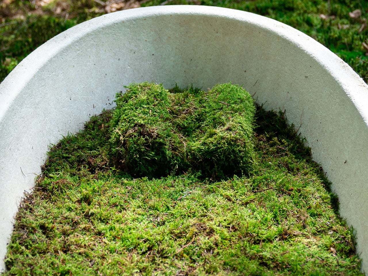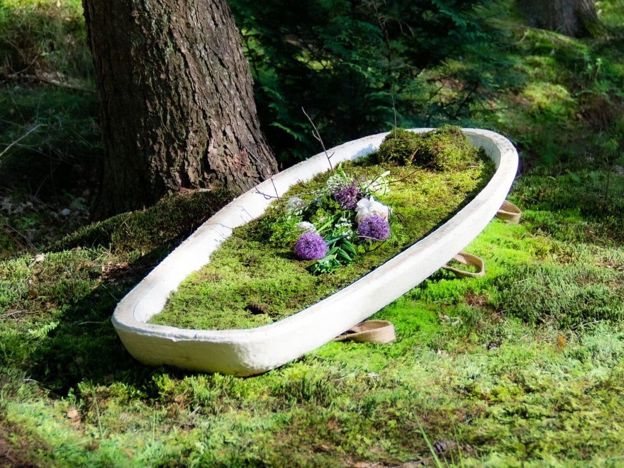 Unlike the velvet-lined wooden caskets, the Cocoon is lined with moss. Moss is the standard material, but family members have the choice to order it lined with any other natural material. The biodegradable construction also makes a considerable difference to the dry weight of the Cocoon. It weighs only 30 kg, which is almost three times less than a traditional wooden coffin.