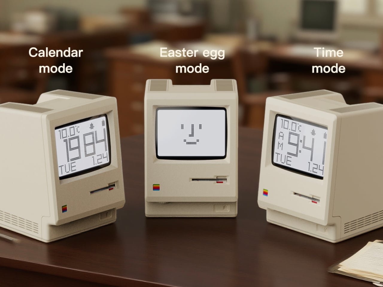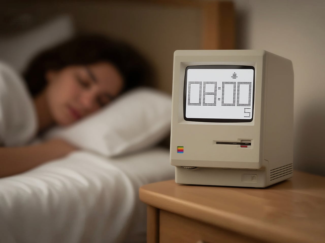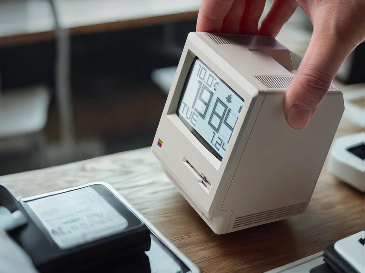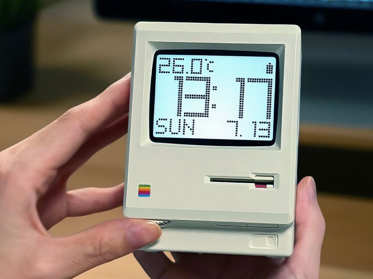 MaClock by Kokogol hits that balance. It is a miniature 1984 Macintosh that works as a rechargeable desk alarm clock, recreating the beige enclosure, rainbow Apple logo, CRT-style screen, and floppy disk slot at nightstand scale. It still behaves like a proper modern clock with 60-day battery life and USB-C charging, not just a static replica gathering dust next to other impulse buys that reminded you of childhood.
