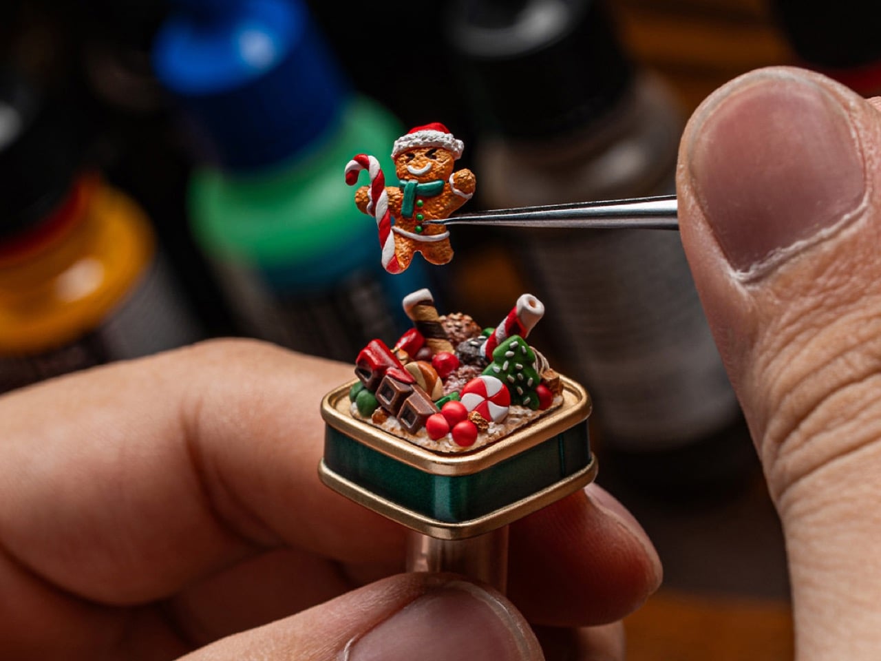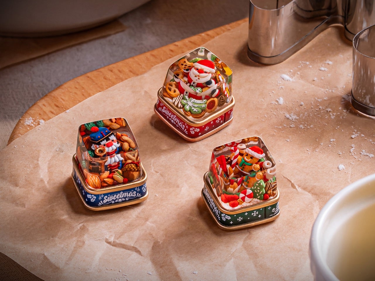 What makes these tiny worlds so compelling is the human touch behind them. Dwarf Factory does not mass produce these pieces; each keycap is the result of a meticulous artisanal process. The internal figures and their festive surroundings are first sculpted and then cast in resin. From there, artists take over, hand painting every minute detail, from the icing on a gingerbread man’s scarf to the rosy cheeks of Santa Claus. This level of dedication ensures that no two keycaps are perfectly identical, giving each one a unique character that automated manufacturing simply cannot replicate.