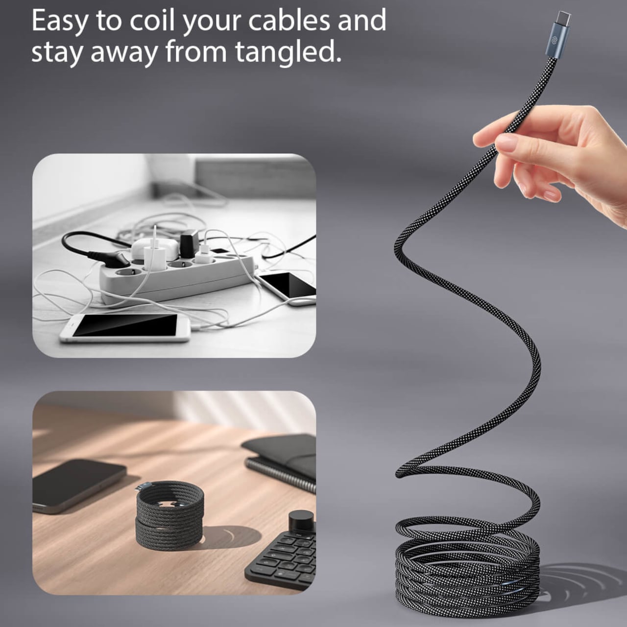 The embedded magnets let the cable hold a shape, whether that is a tight coil on a desk or a loop clipped to a bag. You are not adding clips or Velcro; the cable itself becomes the organizer. SKEGIC calls it a “magnetic anti-tangle design,” and it makes it easy to pull out just the length you need while the rest stays coiled. When you are done, a quick wrap snaps it back into place without hunting for a tie.