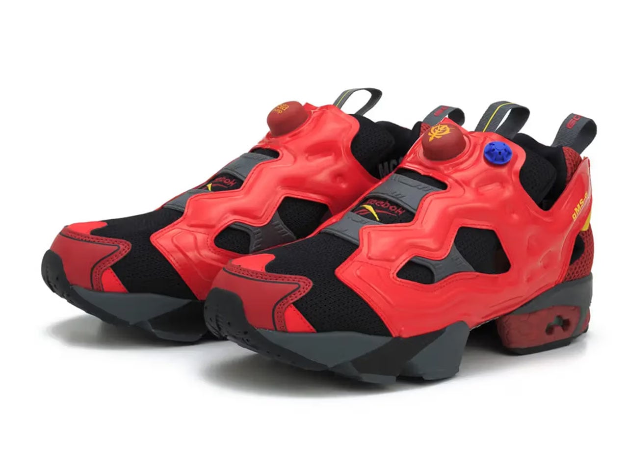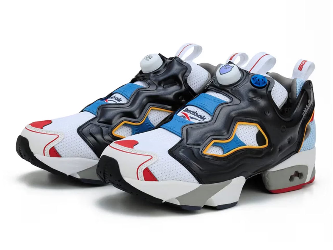 The two sneaker styles centered around the Mobile Suit Gundam GQuuuuuuX theme are impressive. The anime’s signature white, blue, and red color scheme is apparent in the GQuuuuuuX pair, which features a Pomeranian logo as a playful nod to the character within the series. The second pair is inspired by the RED GUNDAM mobile suit. Here, the segmented design of the Instapump Fury 94 is finished in red and black aesthetics.