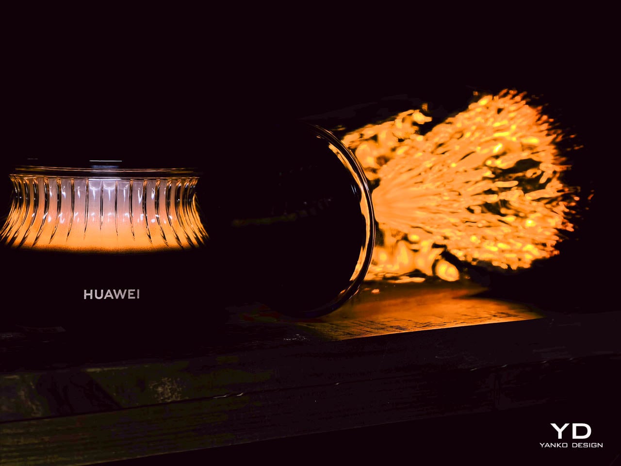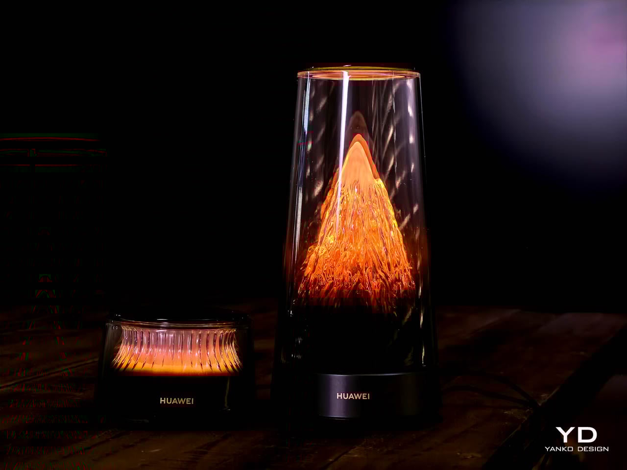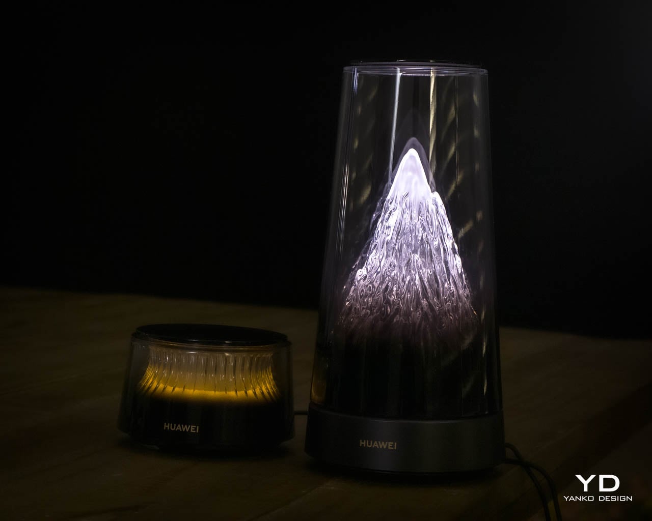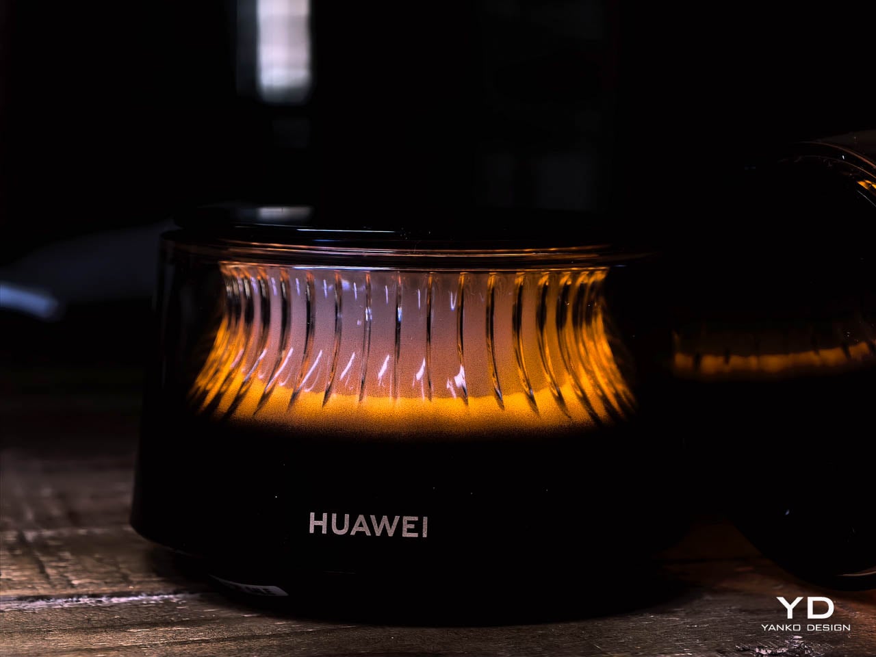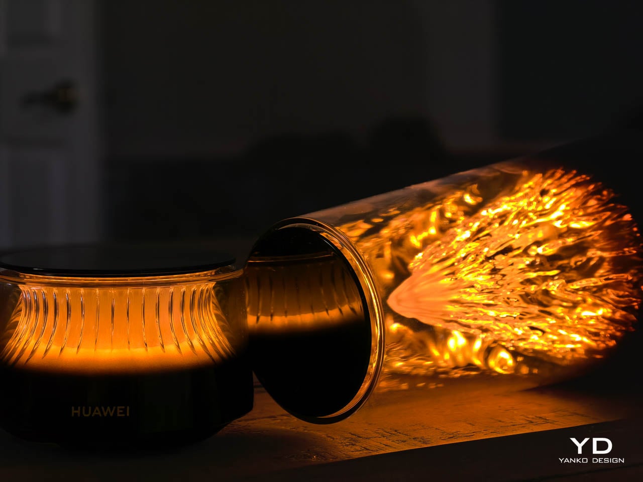 Satellite extenders interpret the same visual language in a shorter, more restrained form. Huawei’s briefing compared them to elegant whisky glasses-a fair analogy. Each unit features smoked outer walls with spaced vertical ribs that break the internal gradient into a soft, pulsing glow. The warm tone matches the main router but feels more intimate, less theatrical.