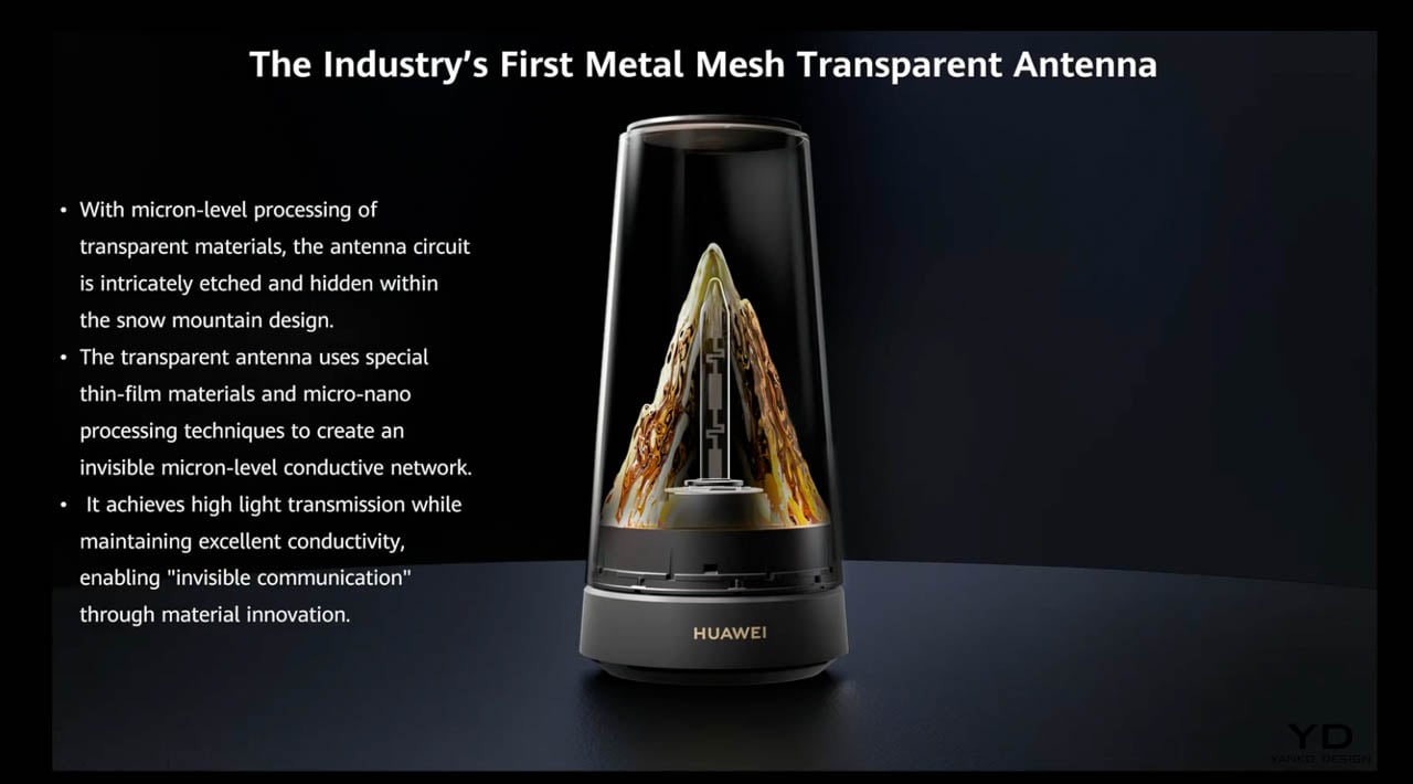 One detail that rarely survives the translation from engineering to marketing: Huawei literally etched the antennas into the sculpted mountain shape inside the dome. Six antennas-three for 2.4GHz, three for 5GHz-run along the contours of the internal cone, hidden in plain sight. The design team integrated signal hardware into the decorative structure rather than bolting it on as an afterthought. That level of form-function synthesis is rare in consumer networking equipment, and it suggests the industrial design team had genuine authority over the final product rather than decorating an engineering prototype.