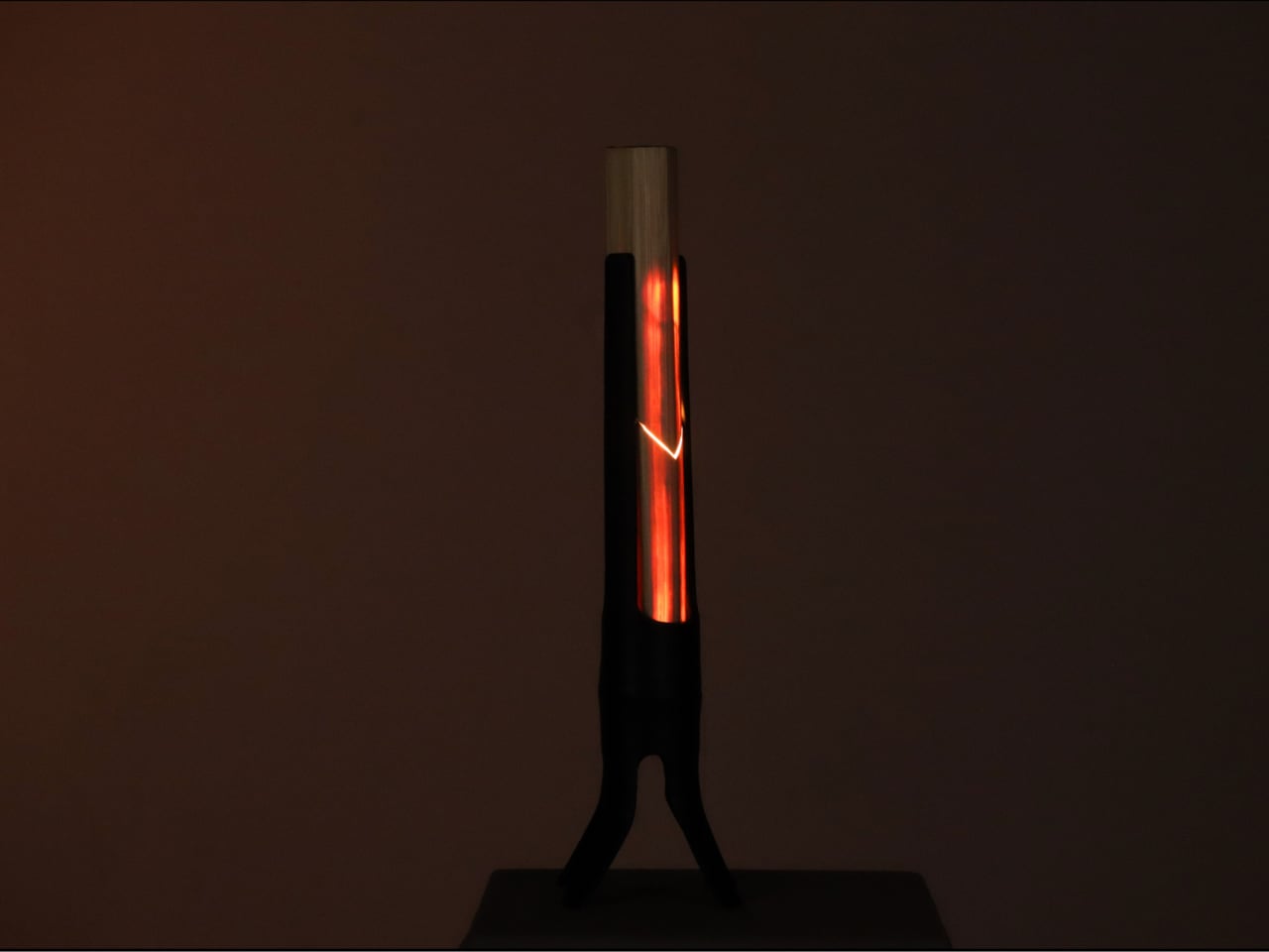 All that carving and assembly work shows up in the way the lamp handles light. The thinned bamboo diffuses and refracts the LED into a warm, even glow along the tube, while the opening mechanism lets you concentrate that light where you need it. It is less about a decorative shade and more about treating the bamboo itself as the optical element, tuned by hand until it behaves the way the designer wants.