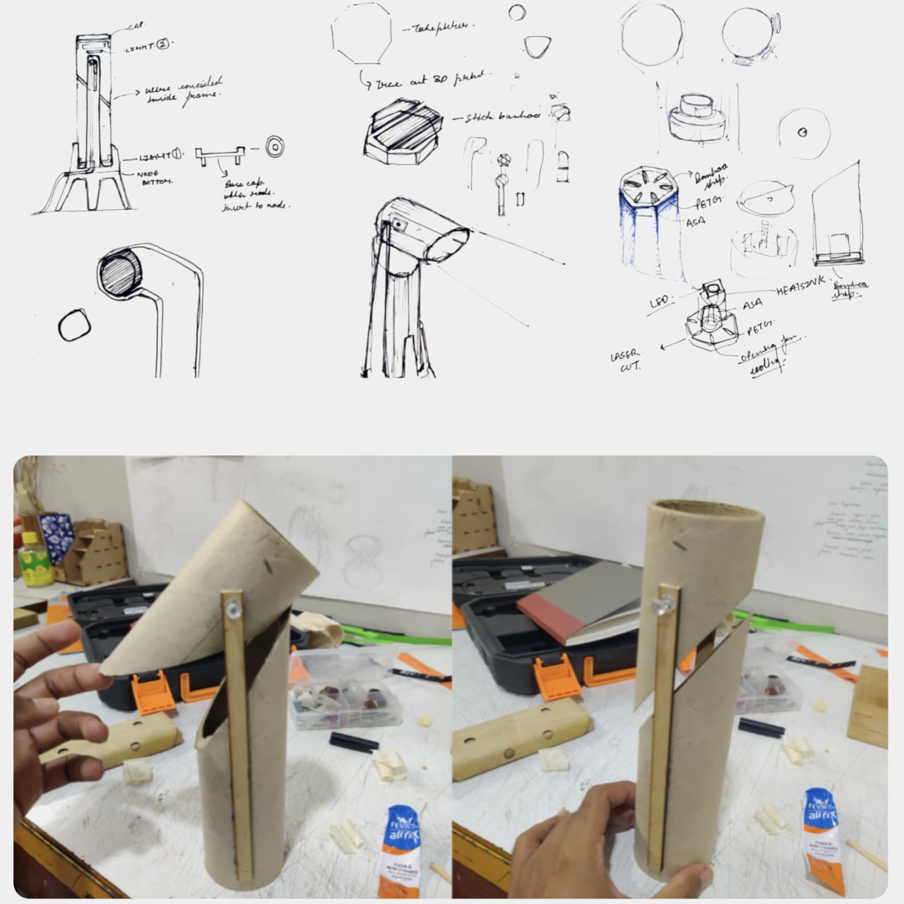 Bamboo usually shows up in design as a structural element, furniture frames, baskets, or as a surface veneer. It is almost always treated as opaque, even though it has a natural light-passing quality if you thin it enough. Paardarshi is a table lamp concept that takes that translucency seriously and builds the whole project around making bamboo glow from within, treating the material itself as the optical element.