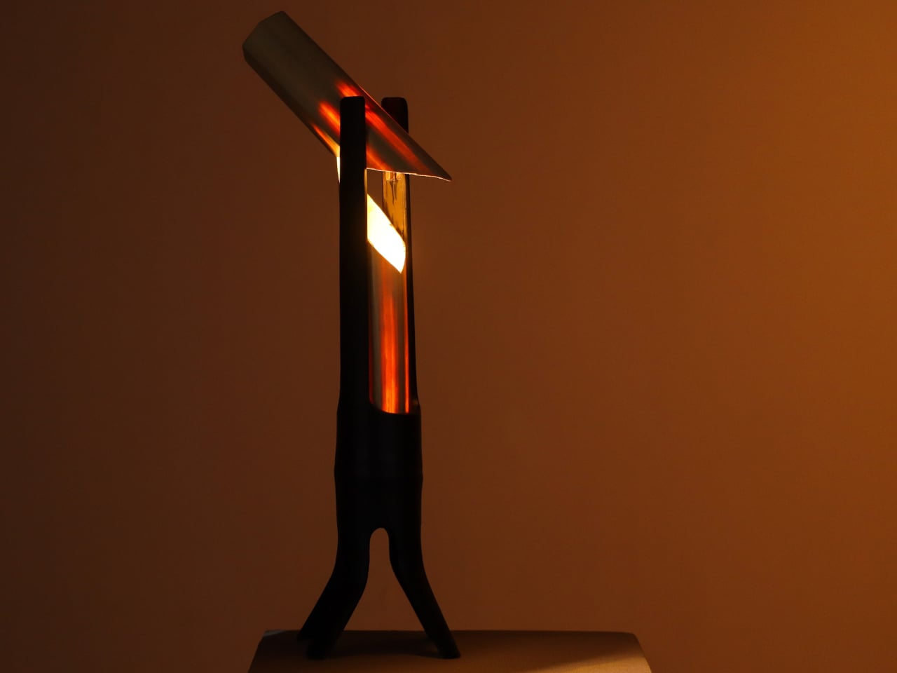The lamp’s form is simple, a vertical bamboo tube on a base that can be closed for ambient light or opened and angled for a focused reading beam. The designer labels these as reading mode and ambient mode, and the same piece of bamboo is asked to behave differently depending on orientation. The geometry stays minimal, the behavior changes with how you interact with it and where you point the tube.