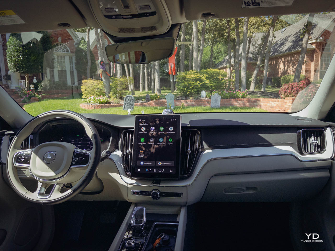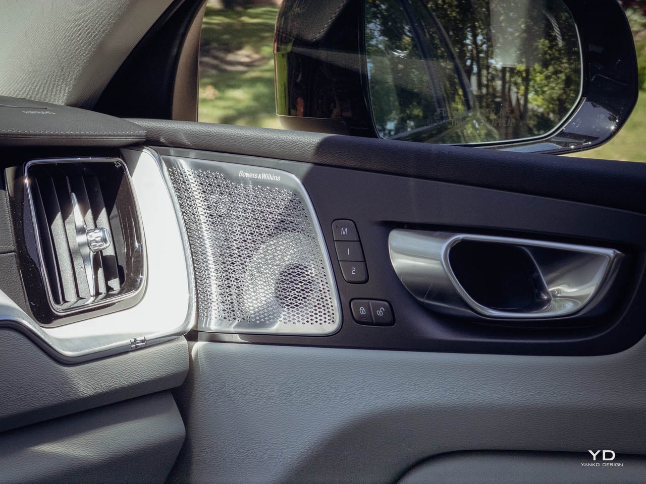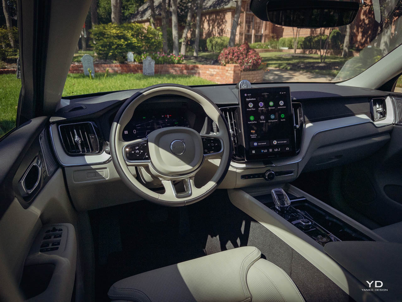 Below it, a small number of physical controls remain for frequently used functions. The volume knob uses a knurled metal finish that rewards tactile interaction. On higher specifications, an Orrefors crystal-style shifter replaces the standard gear selector, introducing a jewelry-like element that catches light without demanding attention. The panoramic moonroof, standard or widely available depending on market, brings natural light into what might otherwise feel cave-like in darker trim configurations. This interplay between enclosed comfort and external connection runs throughout the interior design.
