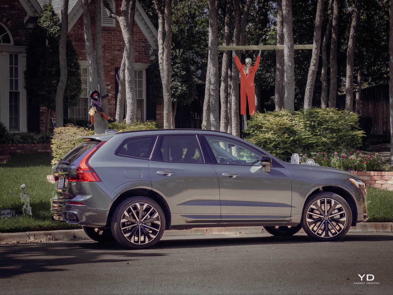 The XC60’s silhouette reads as a refined two-box shape with short overhangs and an upright tail. This proportion feels deliberately conservative compared to the swooping fastbacks and coupe-like rooflines that dominate the segment. The shoulder line runs cleanly from the Thor’s Hammer headlights to the vertical taillights, creating visual length without dramatic surfacing. Wheels ranging from 20 to 21 inches fill the arches appropriately without overwhelming the body. The overall effect suggests competence rather than performance, substance rather than flash.