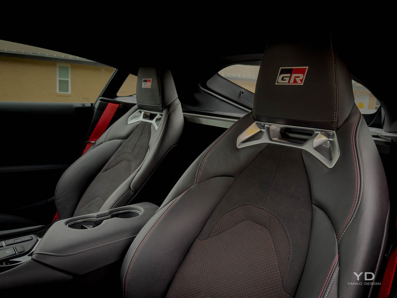 The Final Edition’s interior trim elevates the cabin through Alcantara and leather surfaces with red contrast stitching and GR branding integrated into the headrests and door panels. That red accent strategy walks a careful line: visible enough to communicate the special edition status, restrained enough to avoid the boy-racer look that aggressive color blocking can create. Alcantara appears on high-contact areas where grip matters, and the texture variation it brings is welcome. Leather covers the surfaces where durability and easy cleaning take priority. The combination feels deliberate rather than decorated.