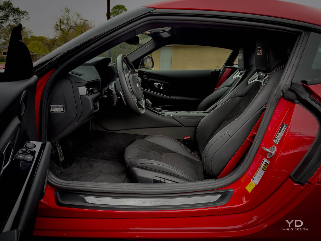 Surfacing across the body panels demonstrates the kind of complexity that requires time to appreciate. The door skins carry compound curves that transition from convex to concave as they approach the rockers, creating shadow lines that change character depending on the sun angle. Fender tops pull upward from the hood line with enough volume to be visible from the driver’s seat, a design choice that deliberately references the original A80 Supra’s visual cues. The hood itself stretches forward with a slight power dome that interrupts what would otherwise be a simple convex surface, adding muscularity without resorting to the aggressive venting common in performance car design.