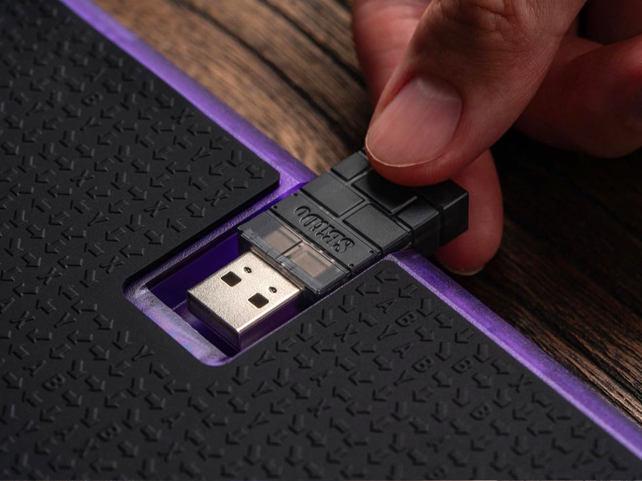 The design itself is more than just a translucent shell. 8BitDo paired the transparent purple body with matching translucent buttons, but smartly grounded the whole thing with a black tempered glass faceplate. This contrast keeps it from looking like a toy and gives it a more premium, serious feel. The signatures of Vxbao and Zhen are integrated into the design, serving as a stamp of approval that makes this a collectible piece right out of the box. Thankfully, it also keeps the excellent quality-of-life features from the original model, like the non-slip silicone mat that keeps it planted during intense matches and the slick magnetic compartment that hides the 2.4 GHz adapter when not in use. It’s a thoughtful package that respects both form and function.