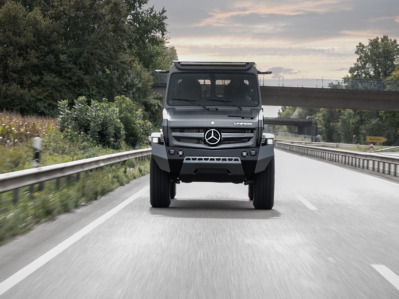 The new luxury Unimog is based on the robust U 4023 chassis, a platform already respected for tackling extreme terrain in both civilian and military settings. It retains core mechanical DNA such as a flexible frame, portal axles that lift critical drivetrain components high above obstacles, selectable all-wheel drive, and differential locks on both axles. These features ensure the vehicle maintains the off-road competence that defines the Unimog name.