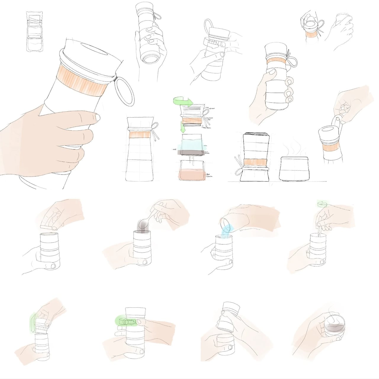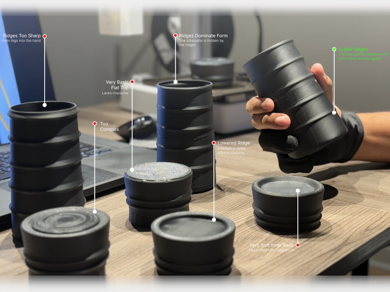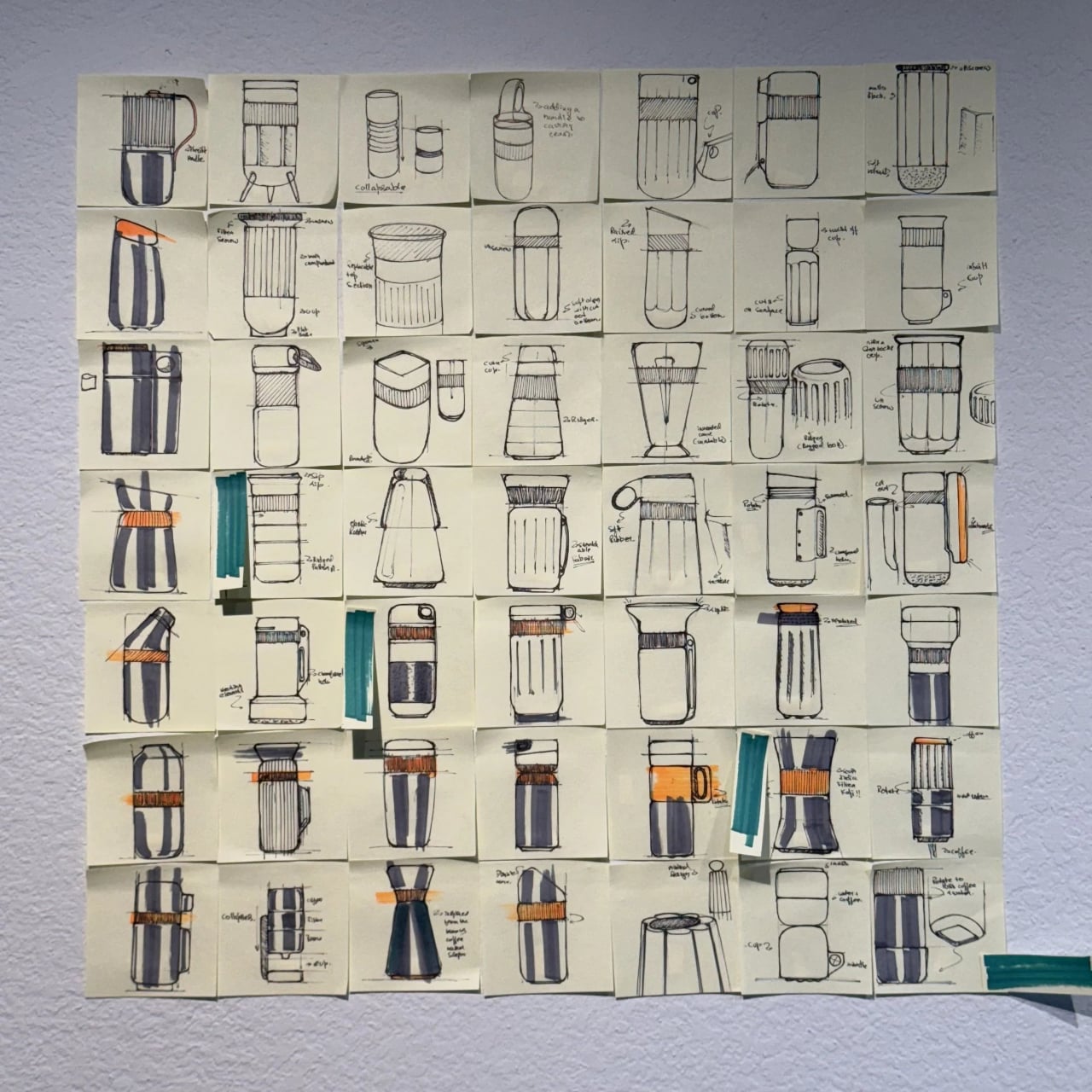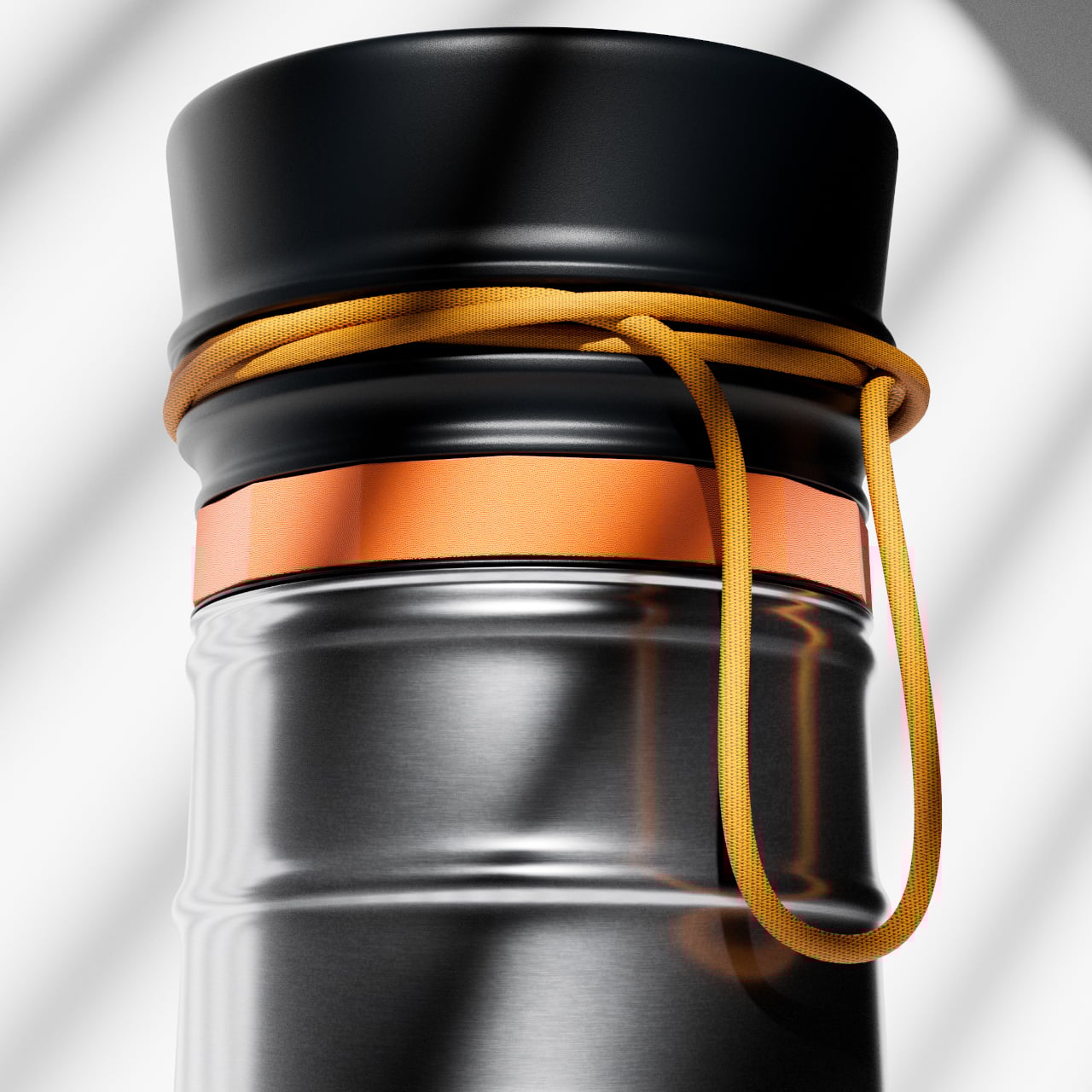 The distinctive ridged stainless-steel body gives fingers a secure place to rest and helps the mug blend in with other rugged gear. The ridges went through several iterations to balance grip and comfort, avoiding sharp edges or overly complex profiles. A flexible rope loops through the top, letting you clip MokaMax to a bag or hang it from a hook, reinforcing its role as part of a mobile kit that lives outside rather than just on a desk.